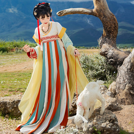 花朝记|樱桃|唐制汉服唐背心垂领衫36破交窬裙披帛间色提花暗纹
