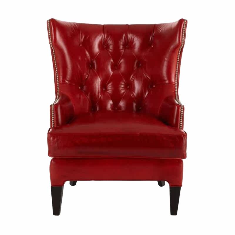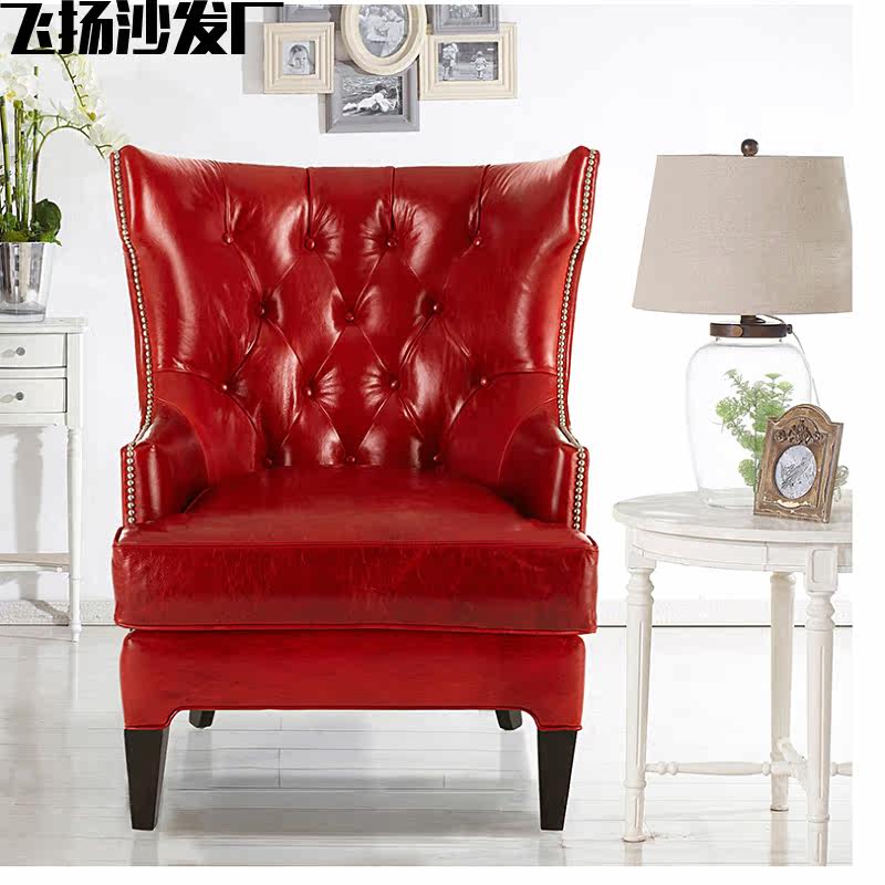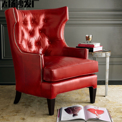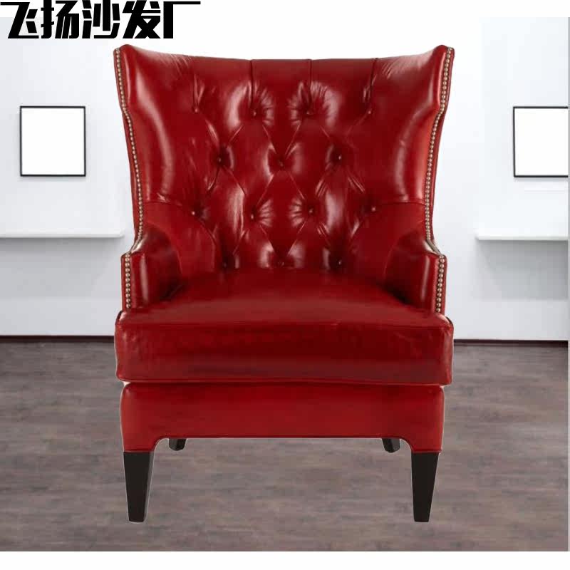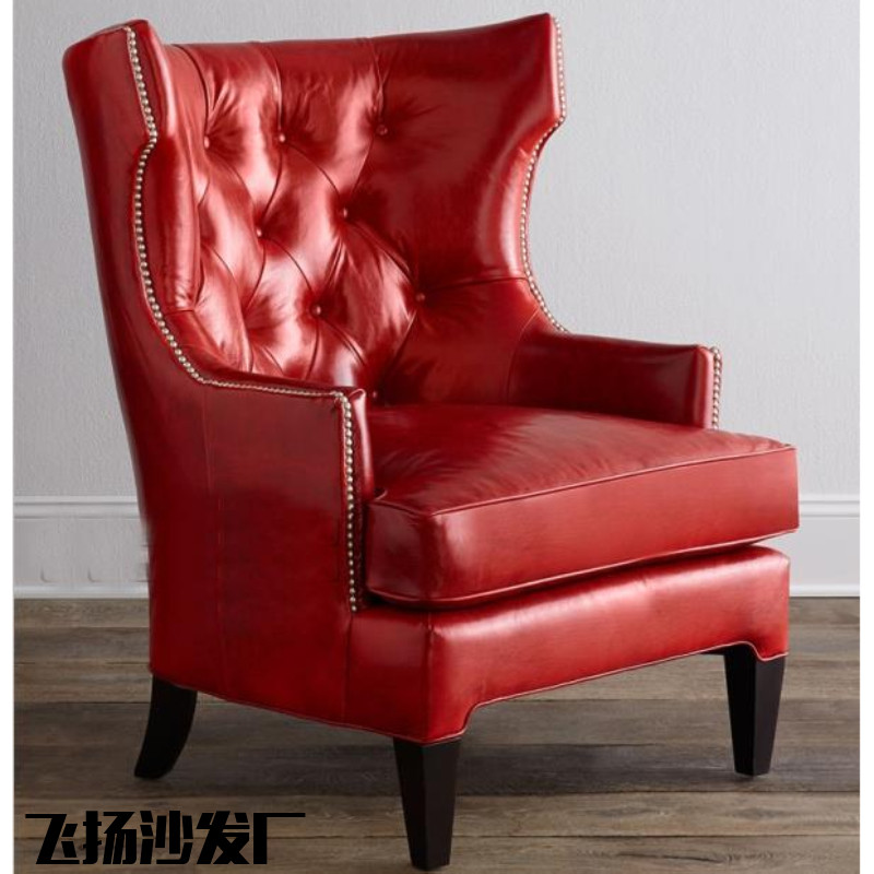 美式现代风格高靠背皮艺客厅组合沙发老虎椅酒红色卧室单人沙发椅