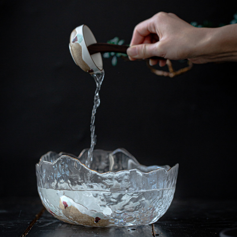 日式锤纹玻璃茶洗杯笔洗水洗碗水盂大号茶道配件水果蔬菜沙拉碗盘