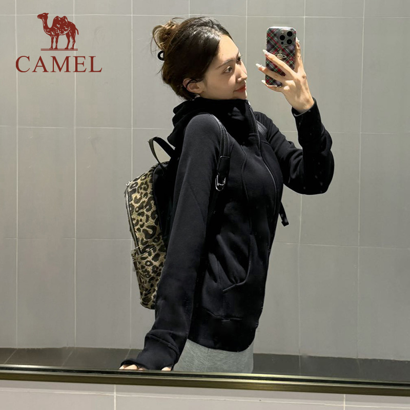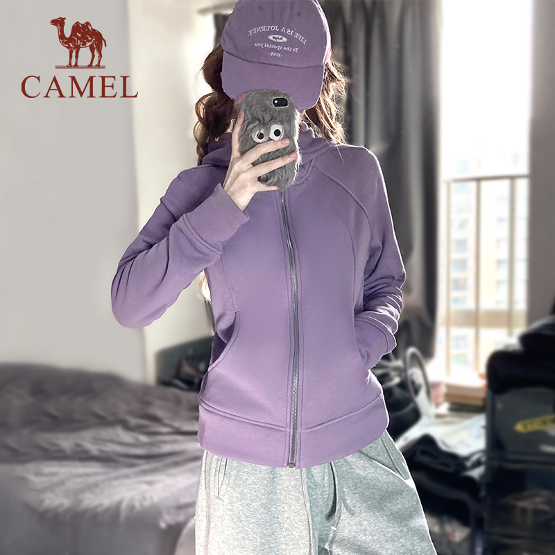 骆驼女装小蛮腰外套2025秋季针织加绒连帽卫衣收腰显瘦修身开衫