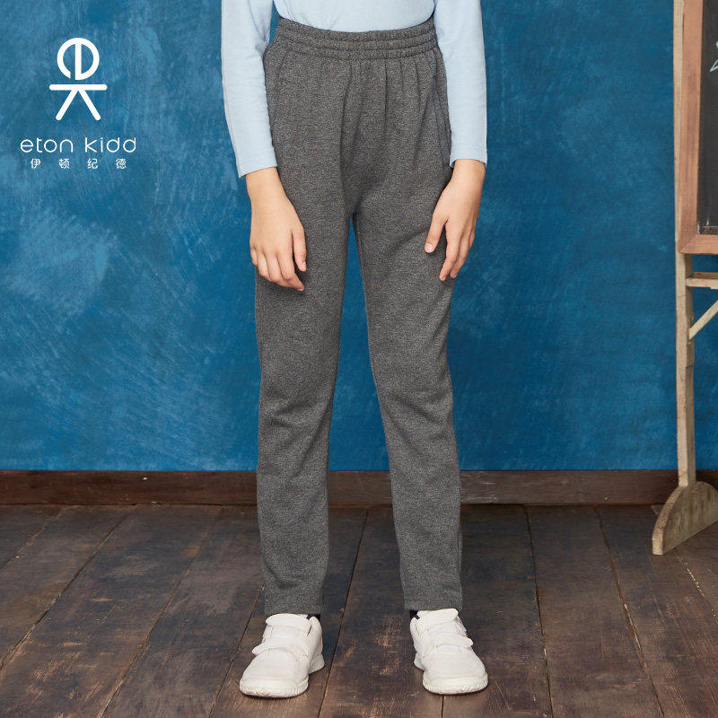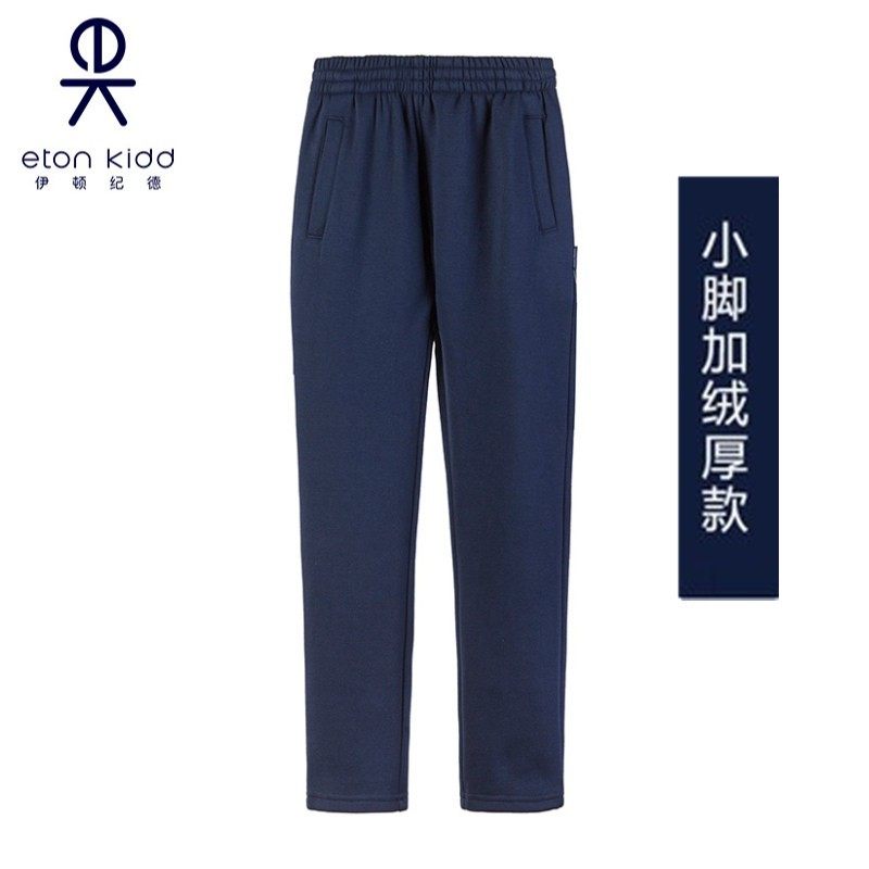 伊顿纪德藏青运动裤男女童灰色小脚裤冬季中小学生加绒裤子17Y068