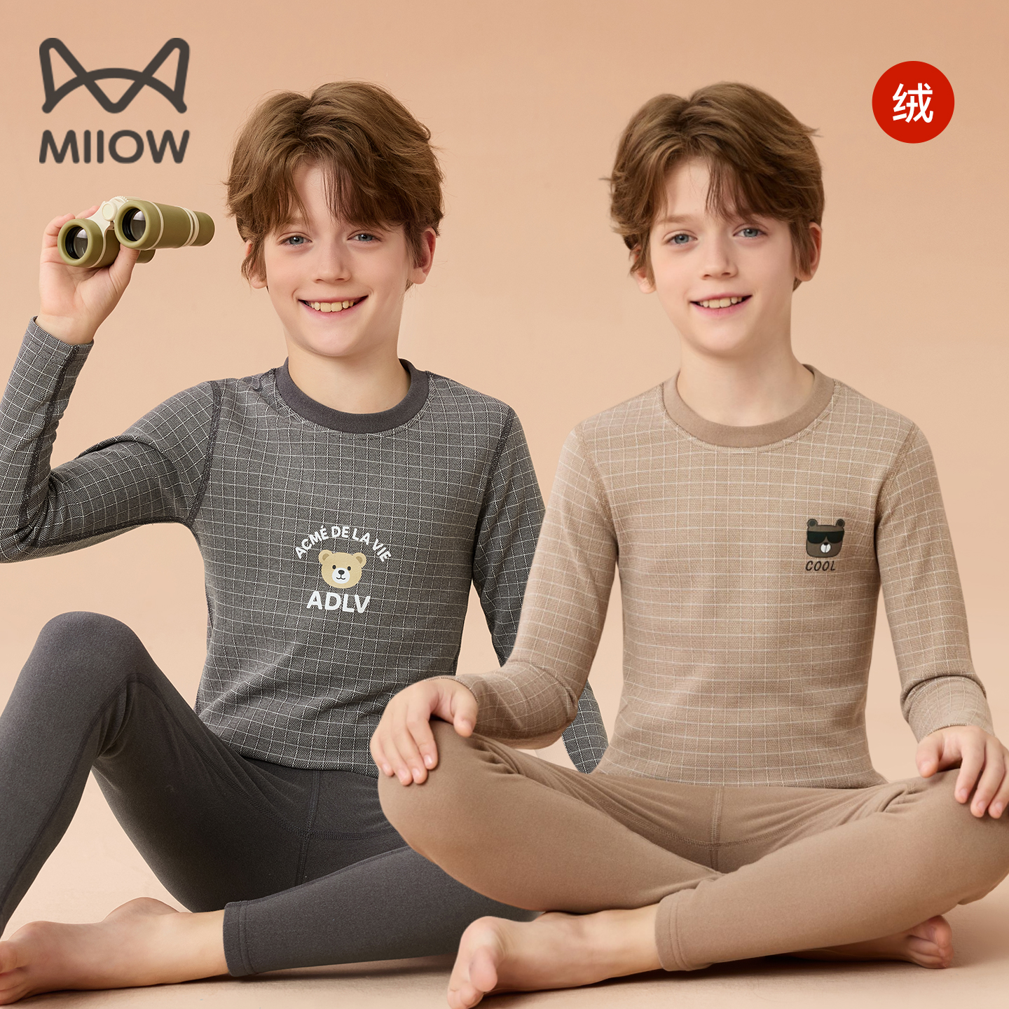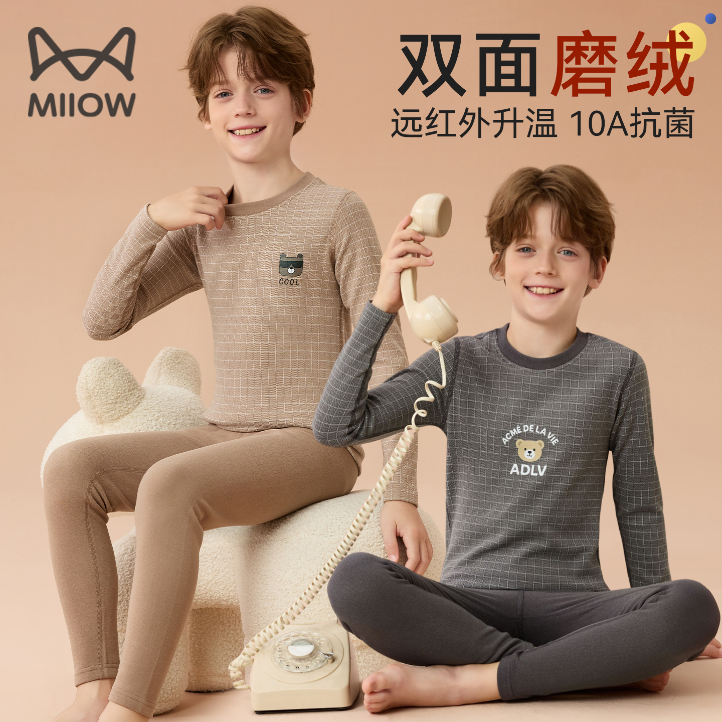 猫人儿童男孩保暖内衣套装绒德大童秋衣秋裤青少年2025新加绒加厚