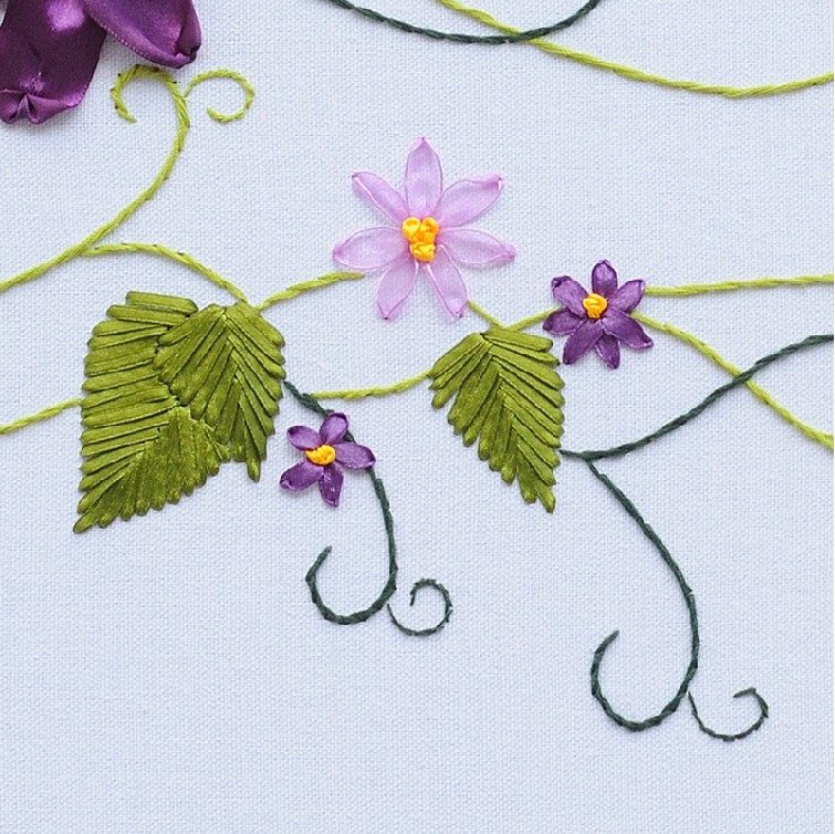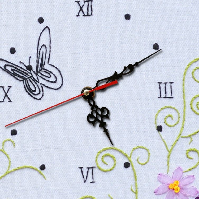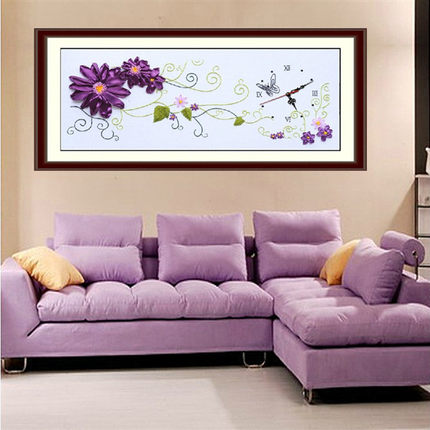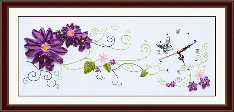 新品包邮丝带绣钟表挂画 紫花梦蝶 紫色优雅客厅大幅印花非十字绣