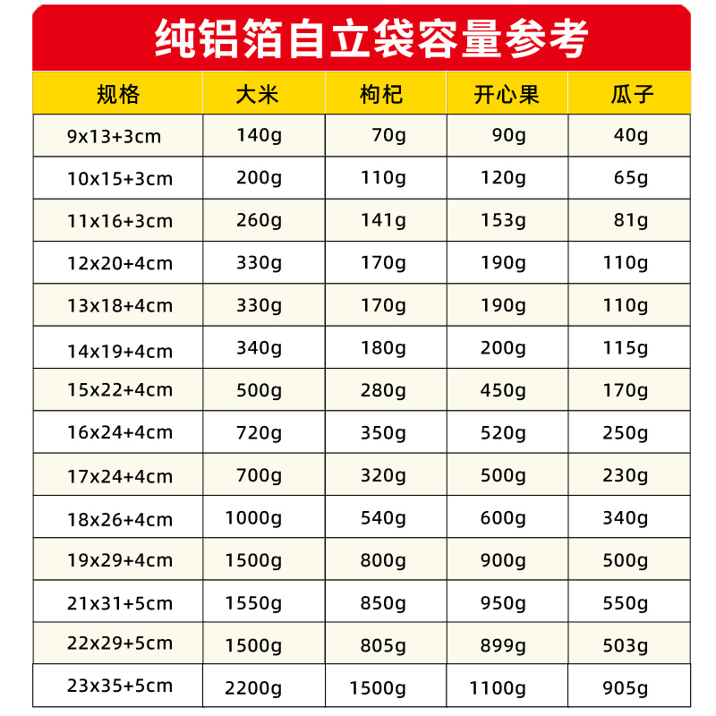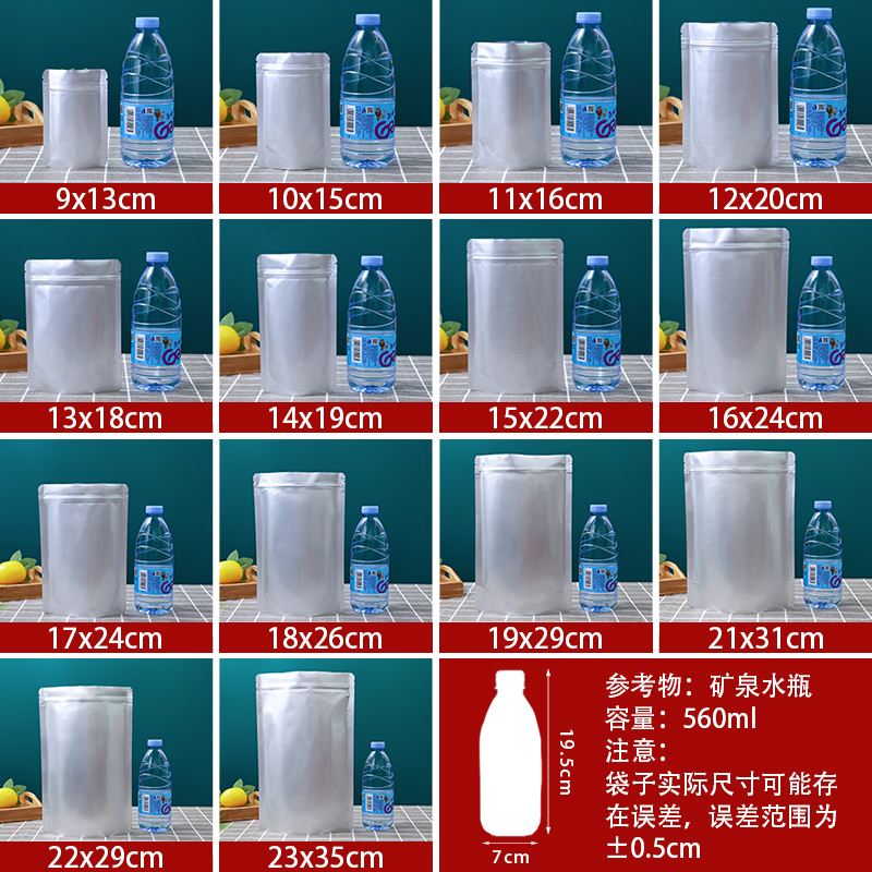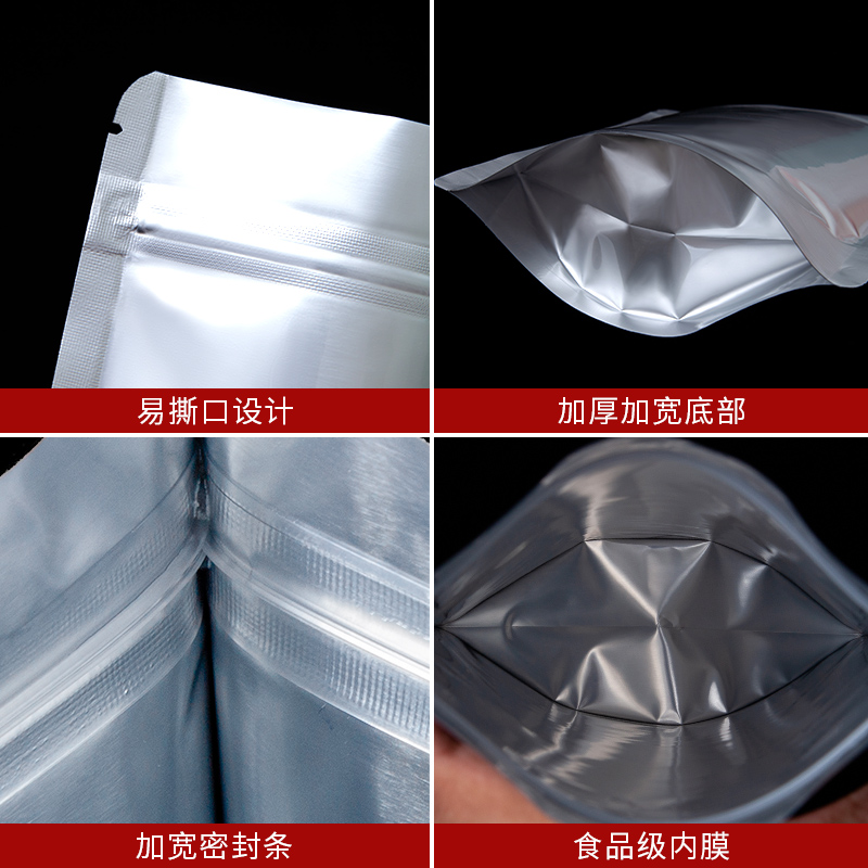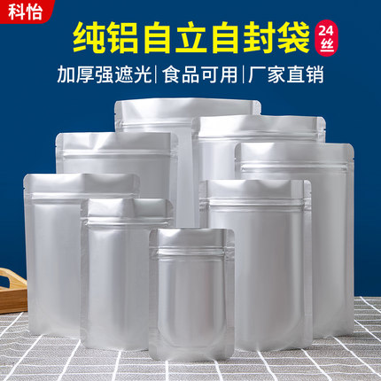 纯铝自立自封袋铝箔加厚拉骨袋食品干果茶叶封口包装袋大号100个