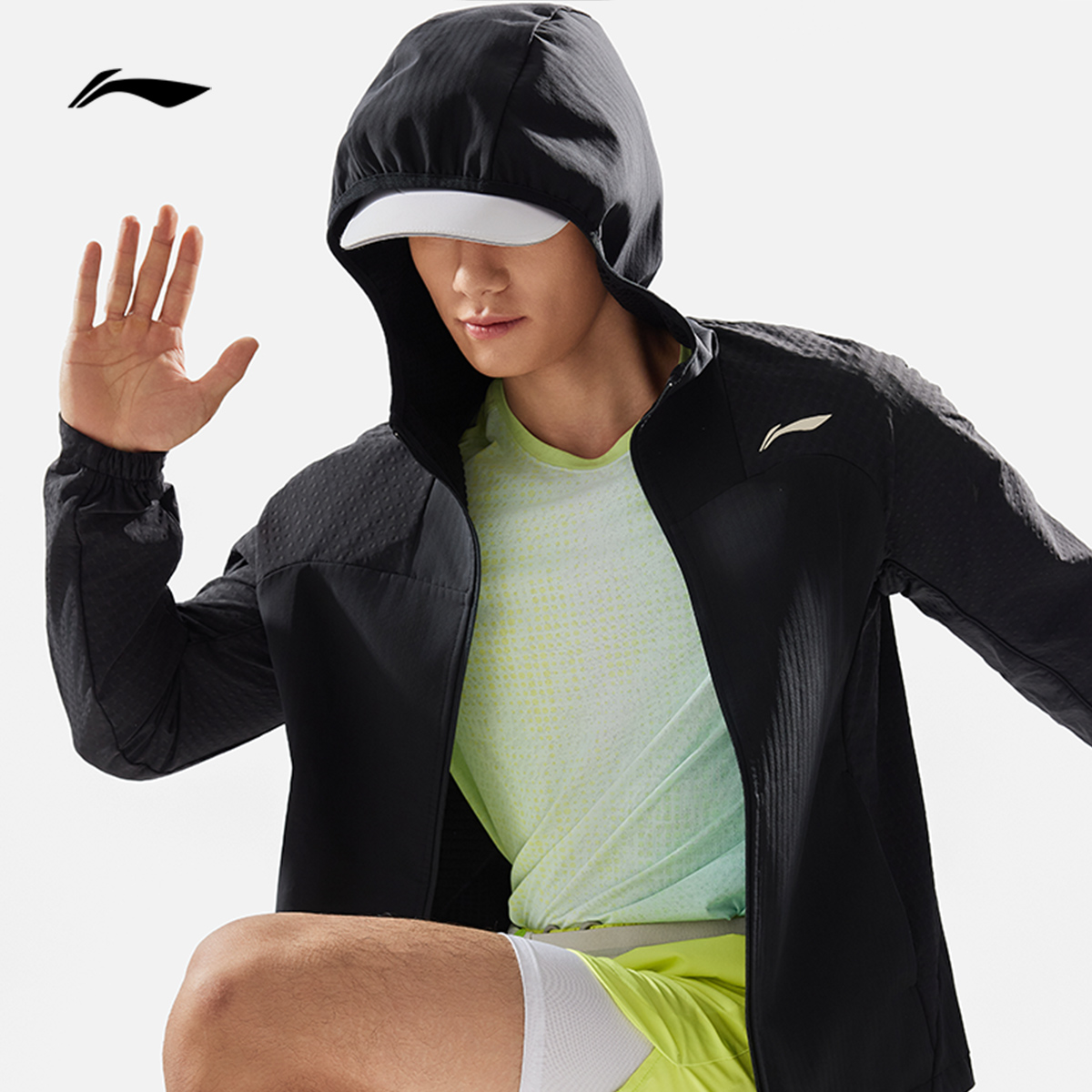 李宁软壳衣男休闲连帽上衣反光跑步训练运动连帽夹克登山服外套