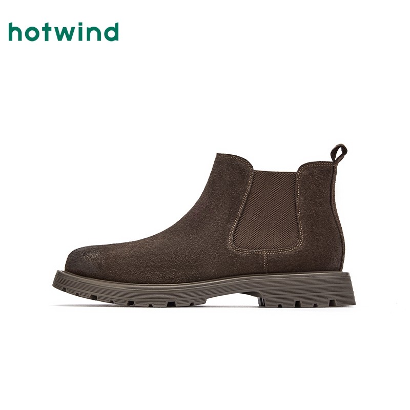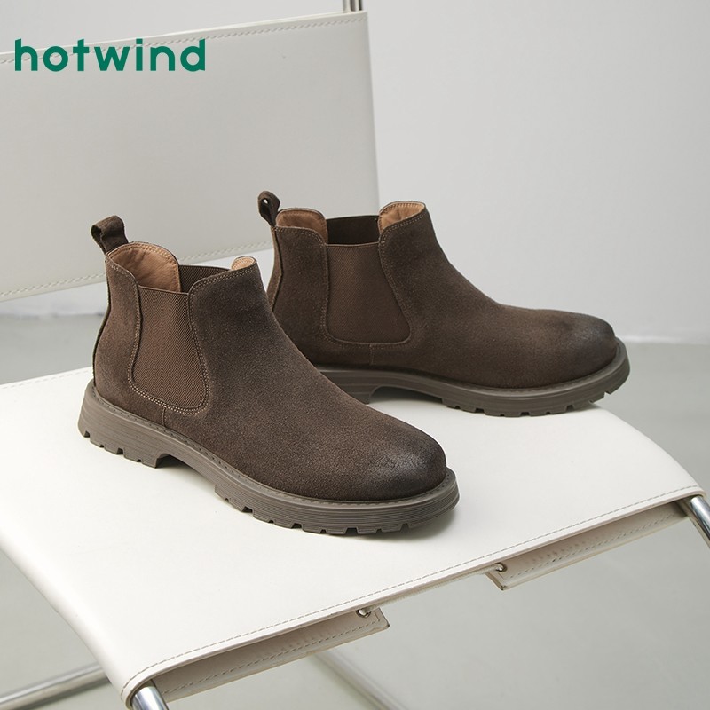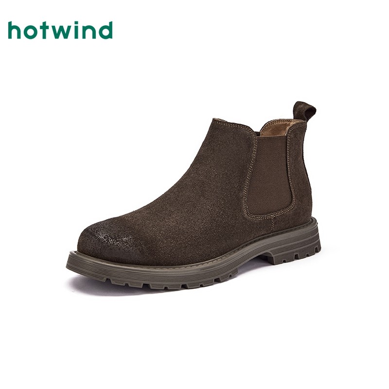 热风冬季新款男士时尚休闲靴英伦风通勤日常短筒靴切尔西靴