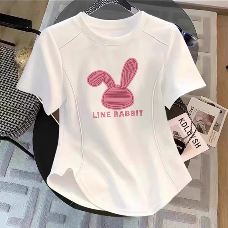 女童短袖t恤纯棉夏装2025新款中大儿童夏季收腰短款弧形上衣收腰