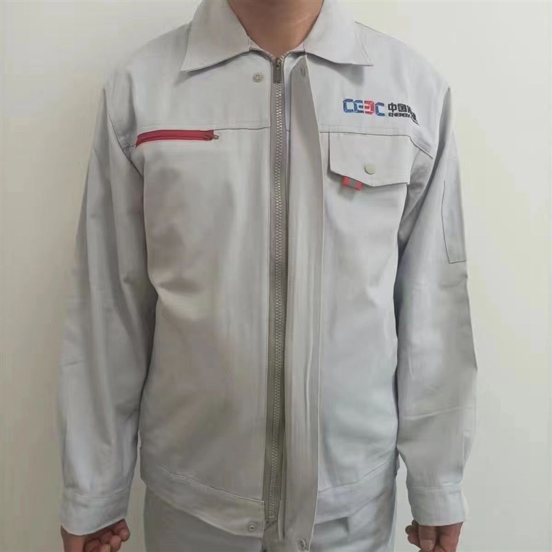 中国能建纯灰白色加厚涤棉面料套装安全舒服透气中国能建工作服