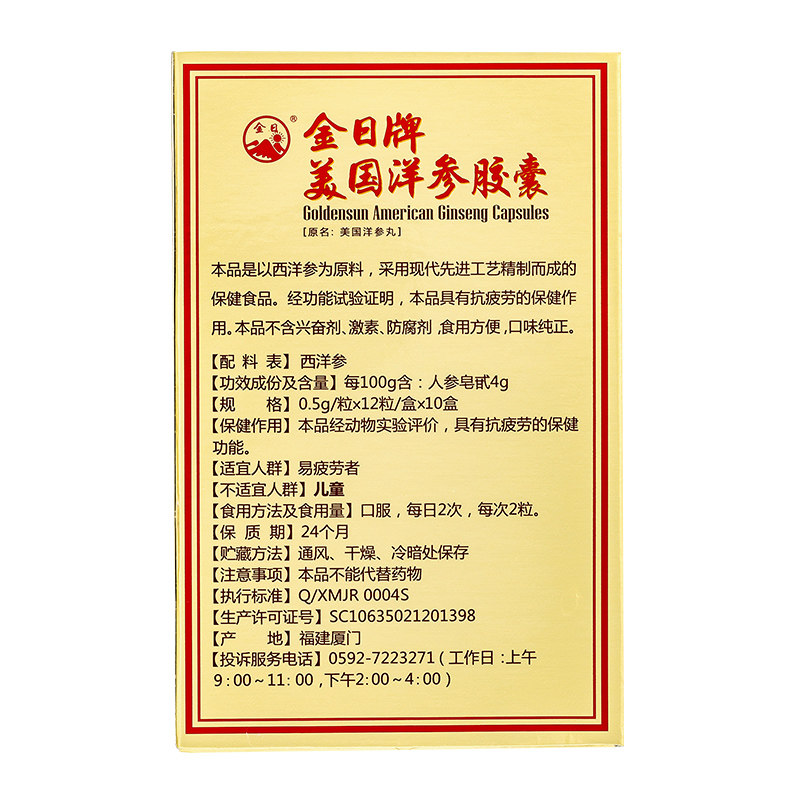 金日牌美国洋参胶囊0.5g/粒*12粒盒10抗疲劳保健品西洋参官方自营