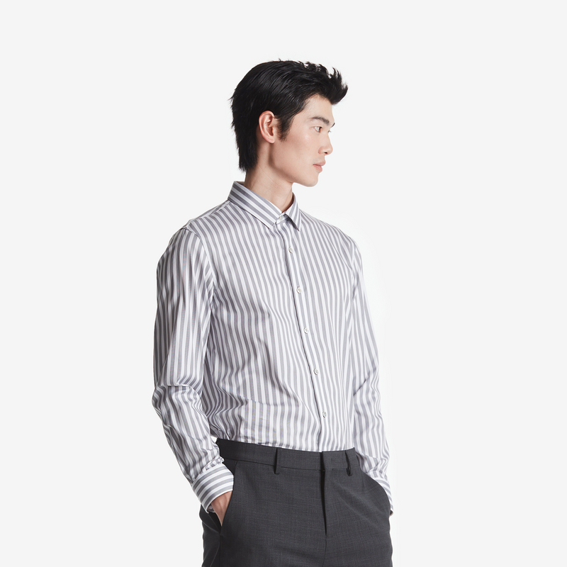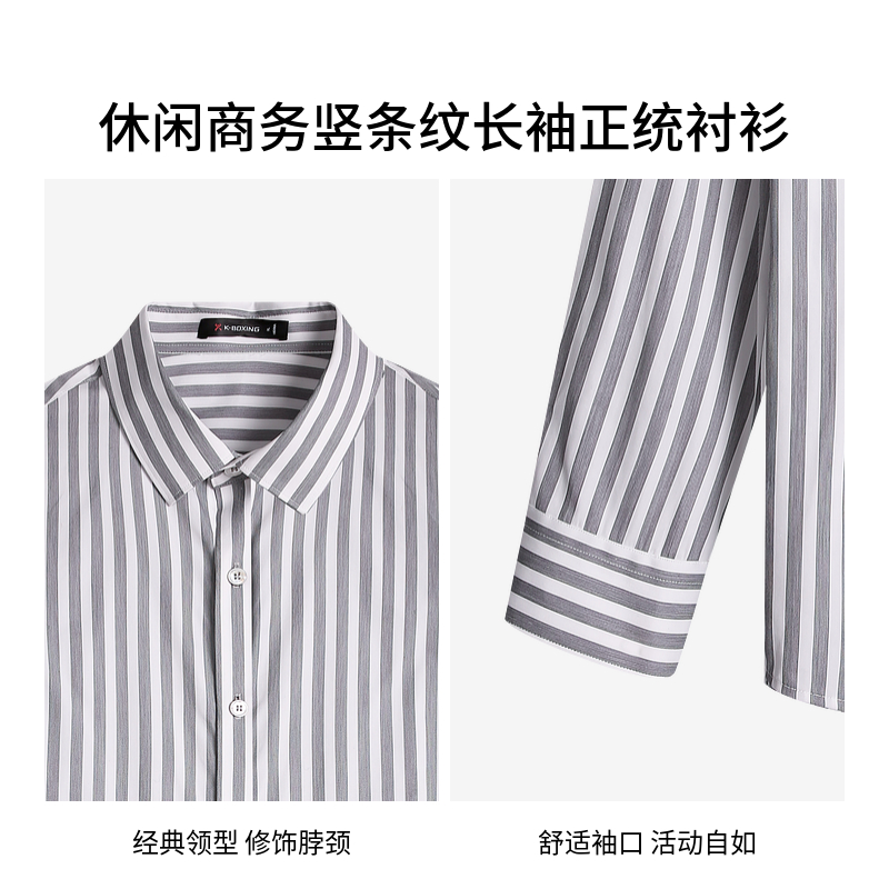 劲霸男装秋季衬衣休闲商务竖条纹长袖正统衬衫男HAXT3941