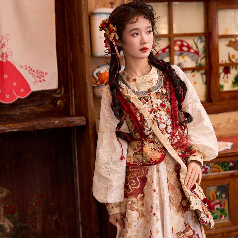 十三余小豆蔻儿[红榴秋焰]国风方巾配饰绣花包包套装民族风斜挎包