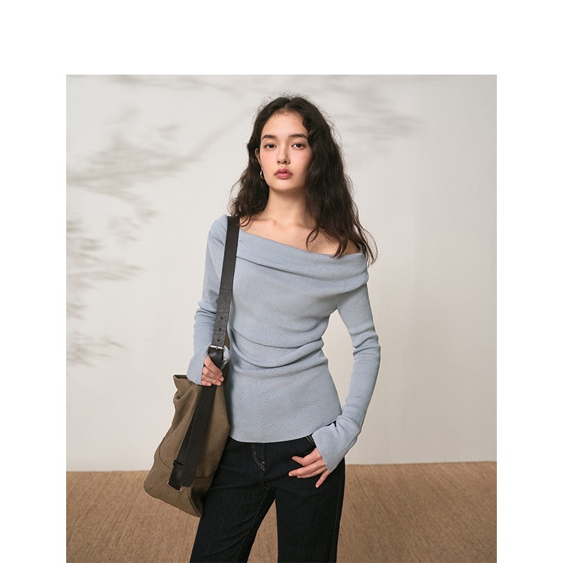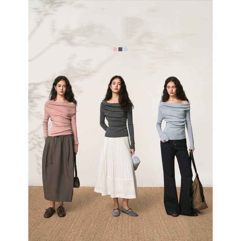 【织虹系列】可机洗荡领针织衫25秋氛围一字肩上衣