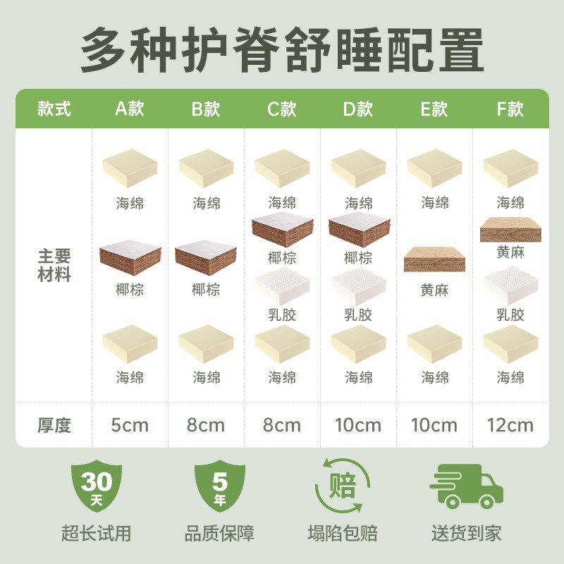 椰棕床垫天然乳胶棕榈黄麻纯3e环保儿童学生家用卧室10cm护脊硬垫