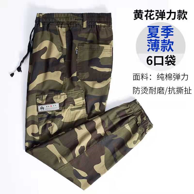 夏季薄款工作男裤迷彩小脚工装裤弹力耐磨休闲束脚6兜裤210