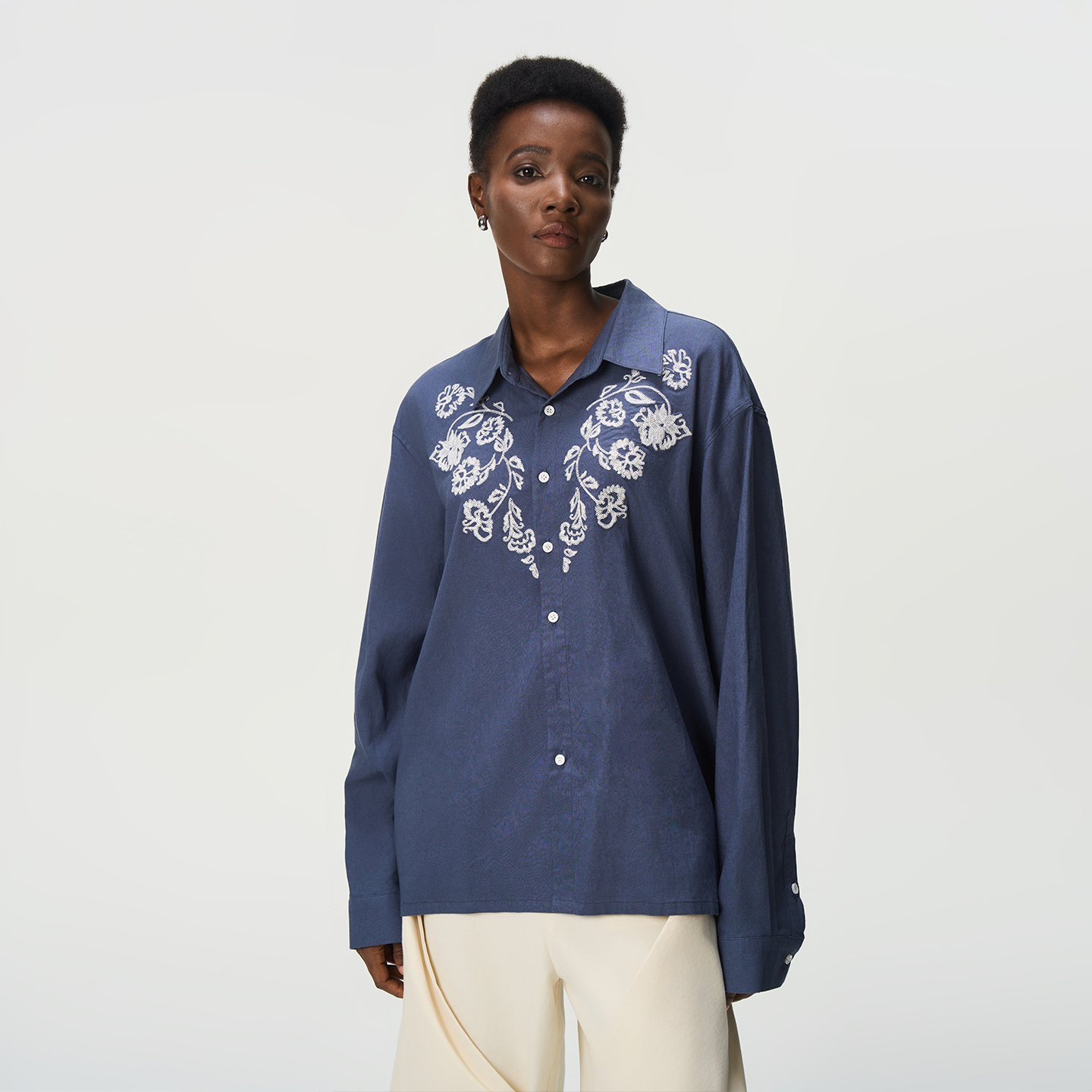 CNEW2025AW 苗岭星绣民族风花卉苗绣棉麻混纺衬衫男女同款