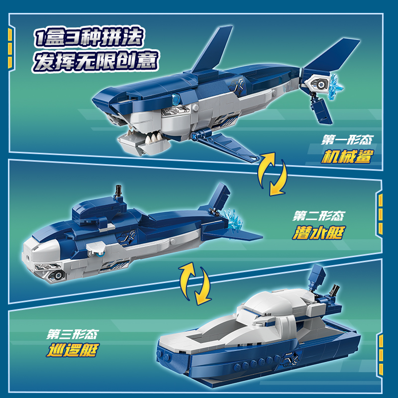 启蒙积木坦克潜水艇创意变形拼装儿童男孩玩具益智模型礼物42112