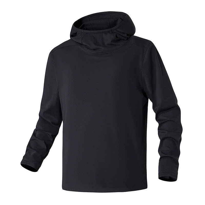OVJF2025新款连帽长袖T恤男卫衣纯色运动打底衫跑步健身上衣薄款