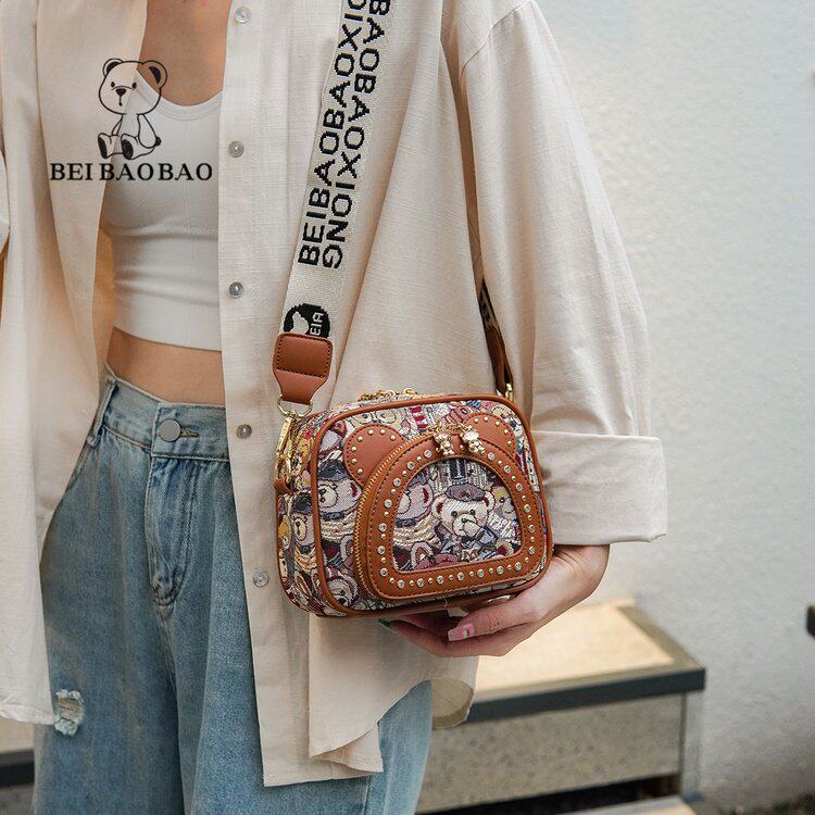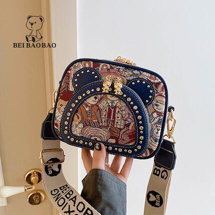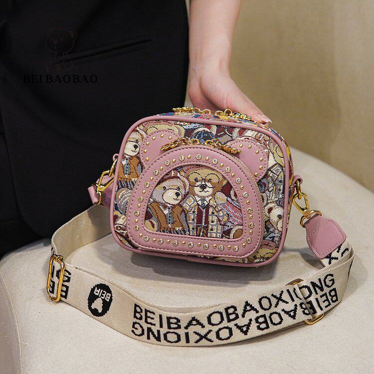 2026新款时尚休闲手机包百搭ins卡通帆布小方包单肩斜挎包小包包