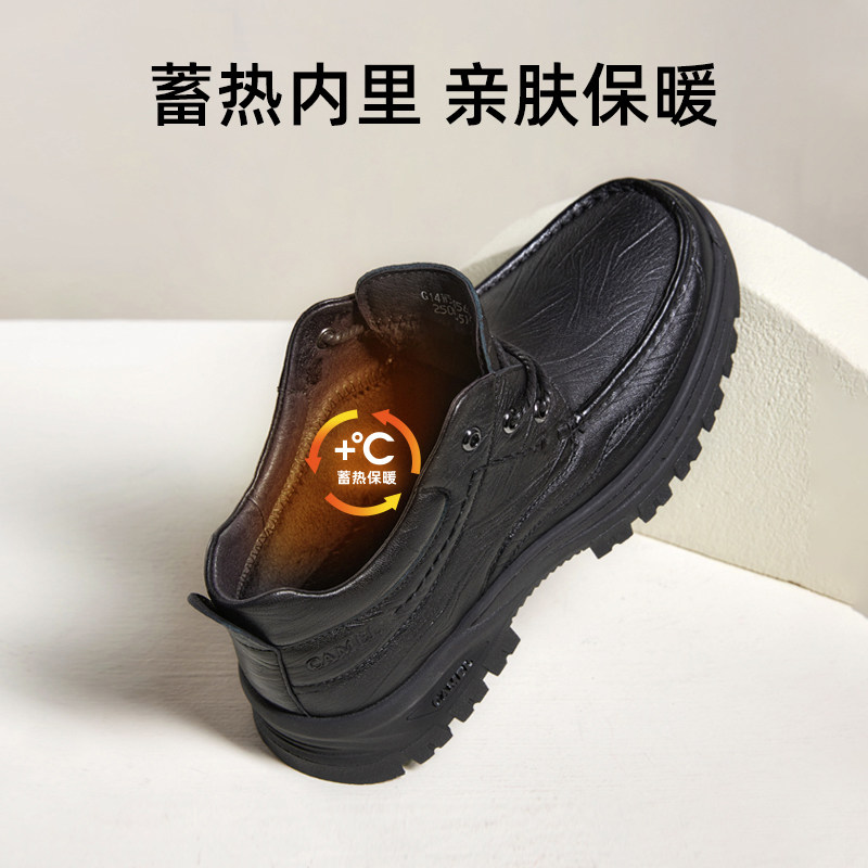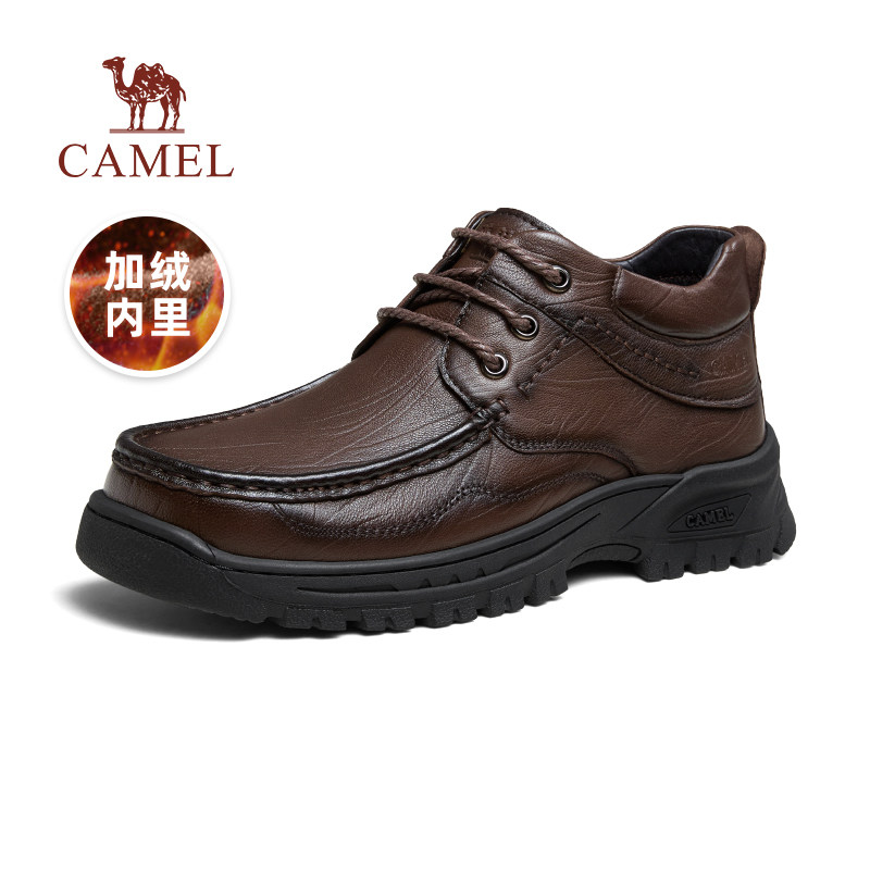 骆驼2025冬季舒适高帮保暖加绒增高厚底耐磨中年通勤商务皮鞋男士