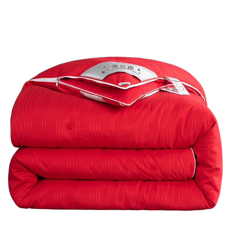 手工100%桑蚕丝蚕丝被子母被春秋被加厚冬被结婚被芯婚庆红色被子