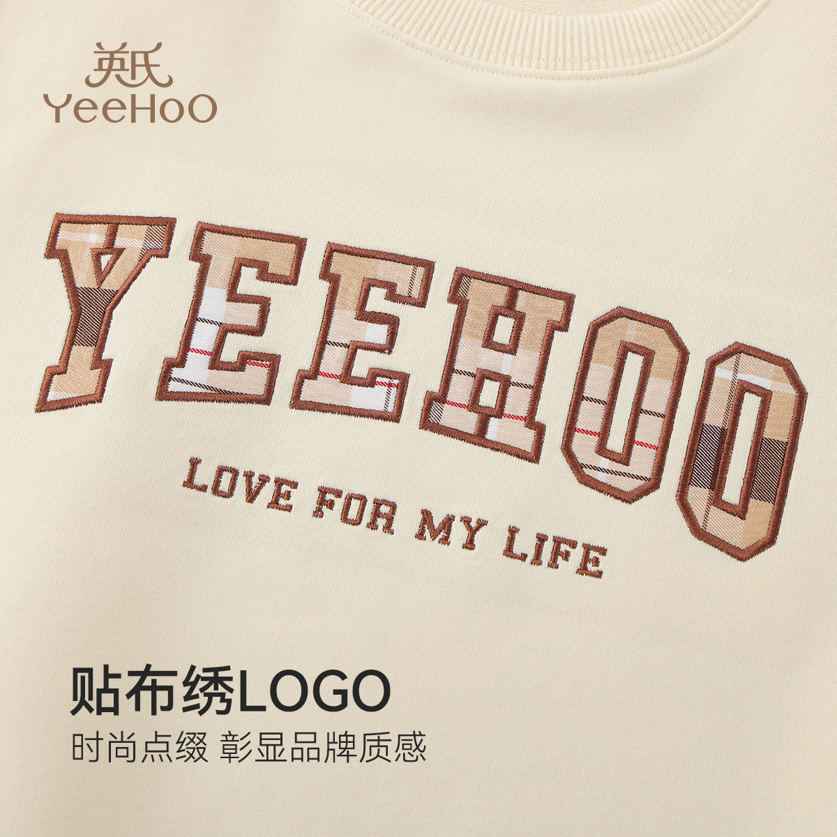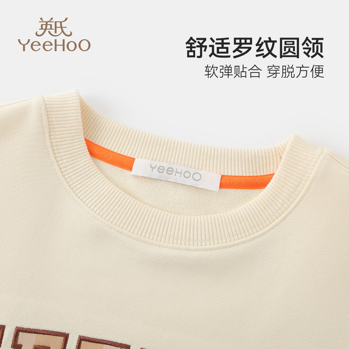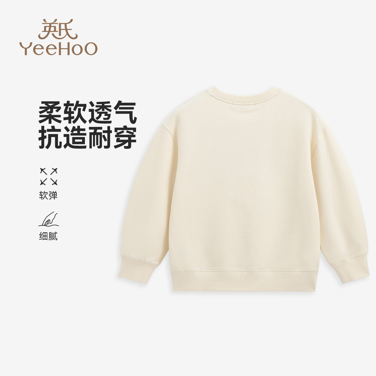 英氏儿童休闲卫衣2025秋季新款男女童套头衫小童宽松运动刺绣上衣