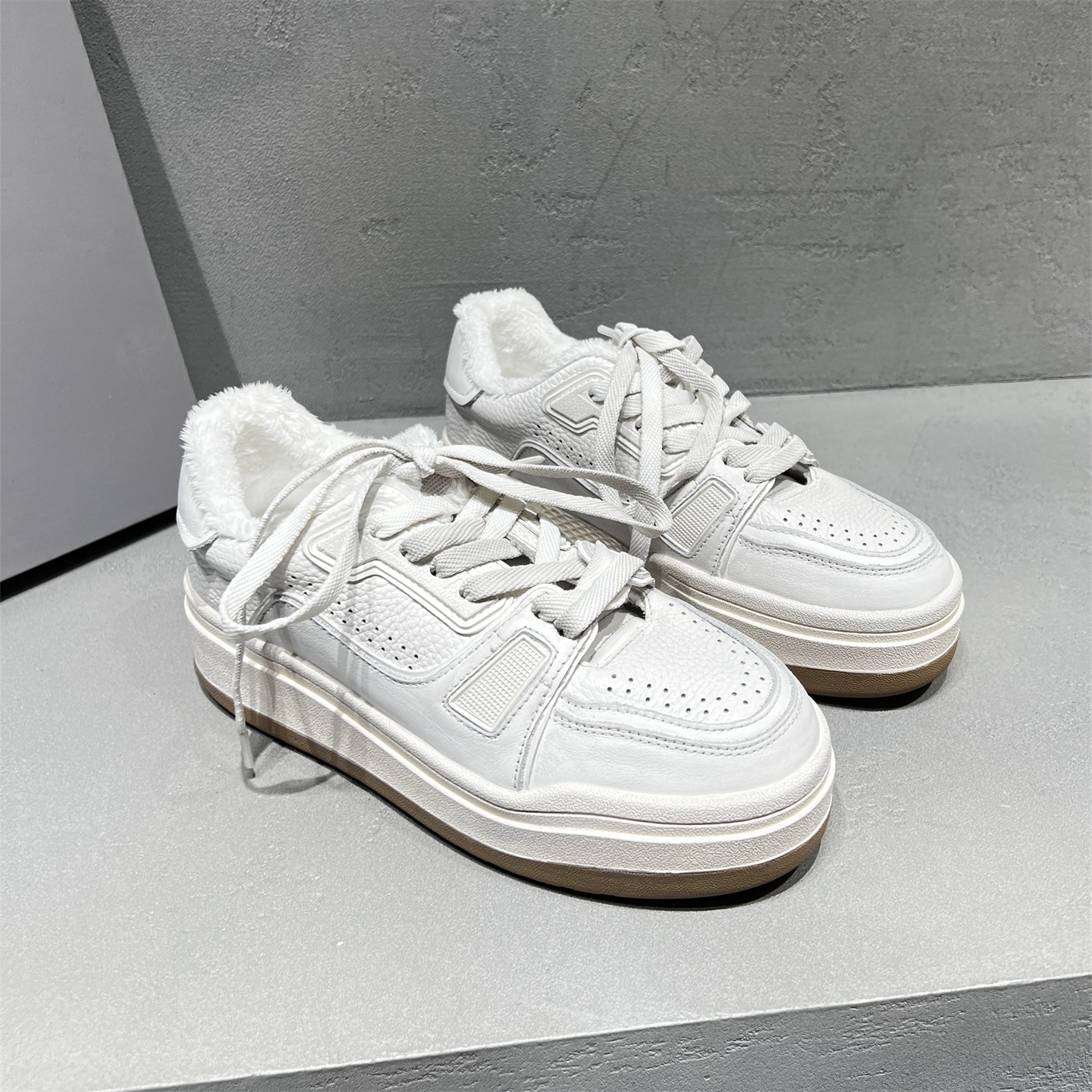 真皮厚底加绒保暖小白鞋休闲板鞋