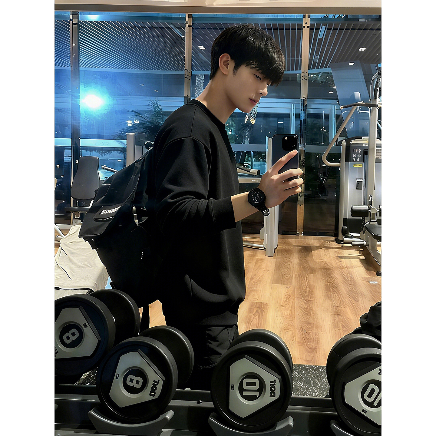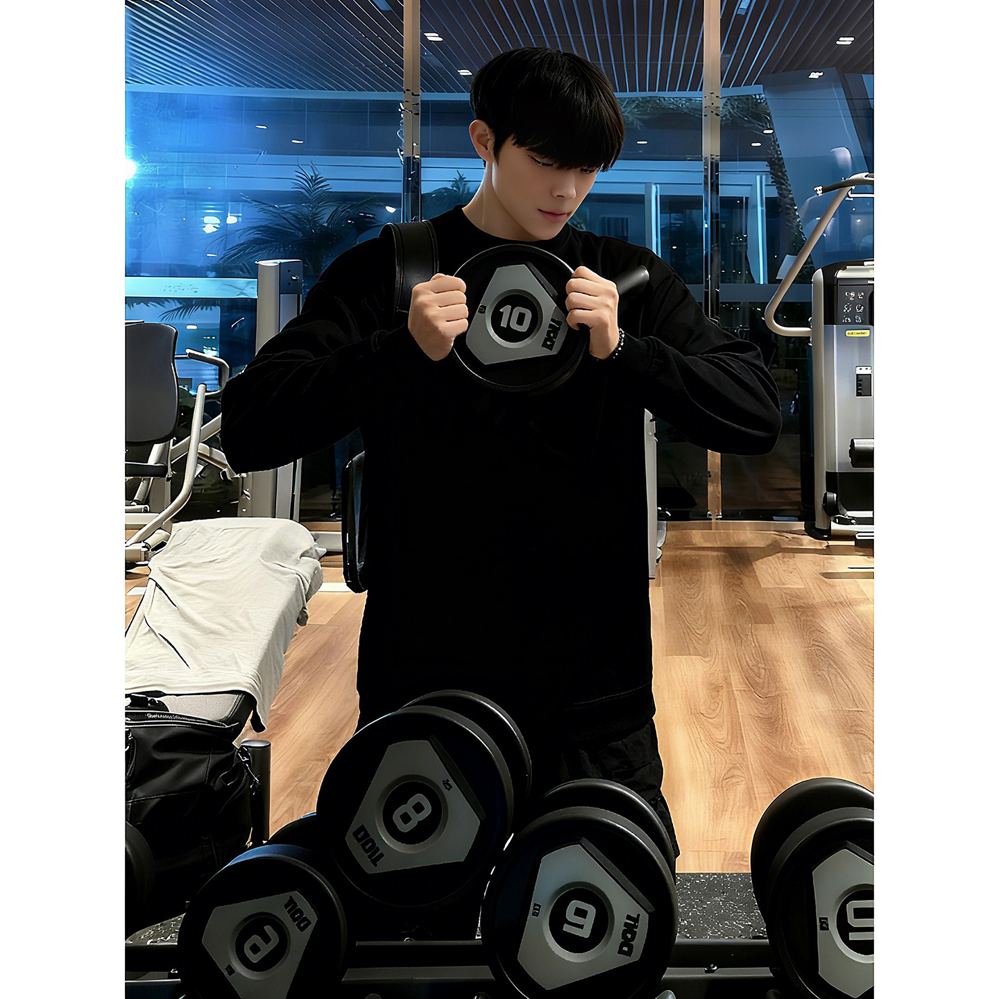 cleanfit加绒打底衫男秋冬季纯棉小领口内搭长袖t恤美式正肩卫衣