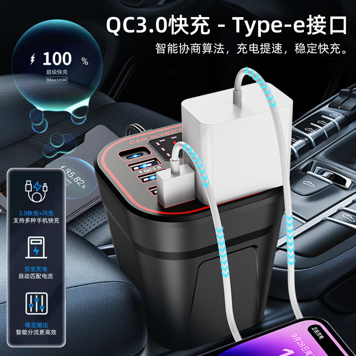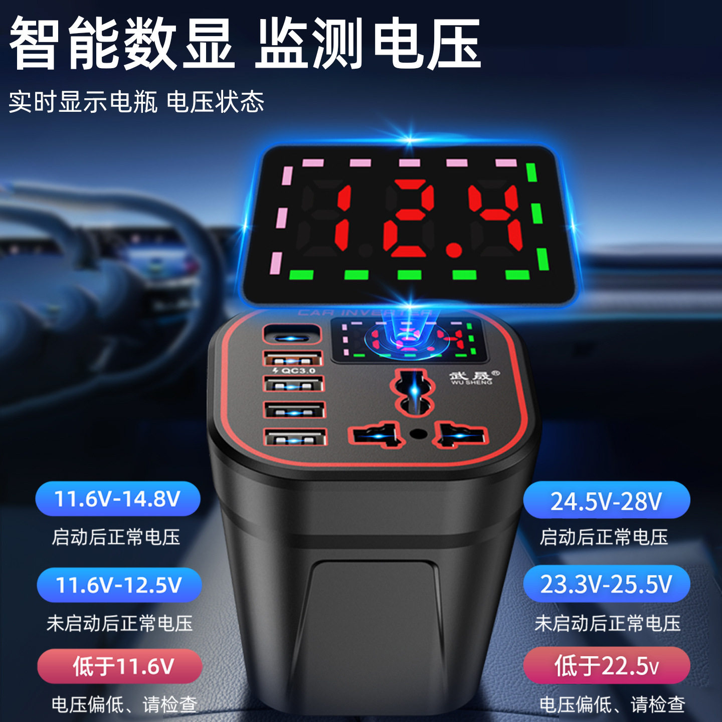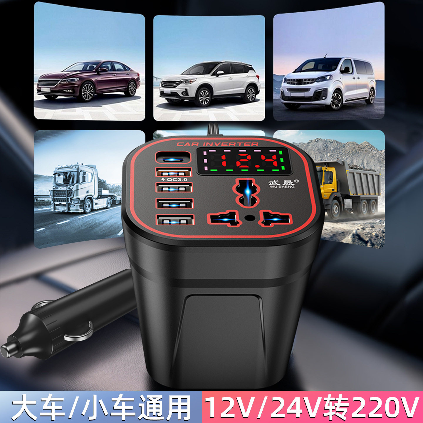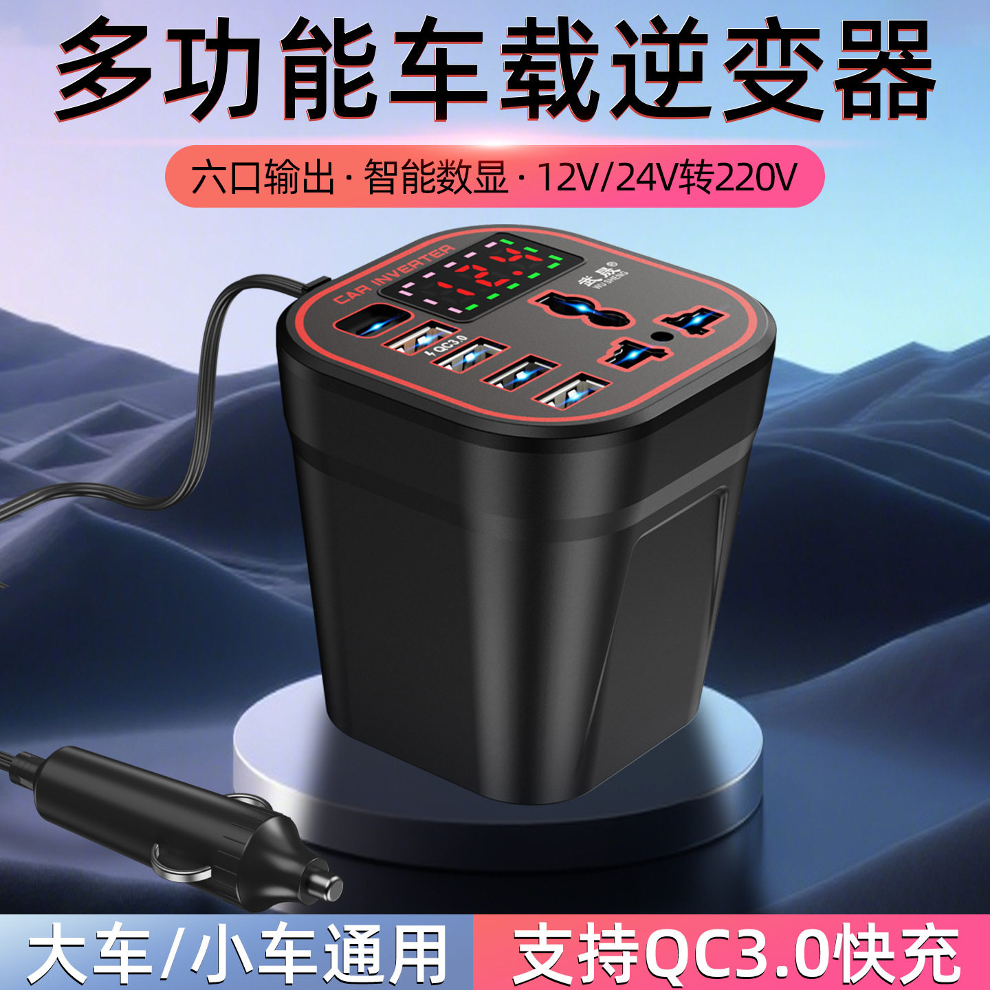 多功能车载逆变器12V24V转220V大容量智能数显六口快充电源转换器