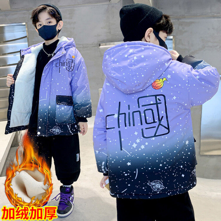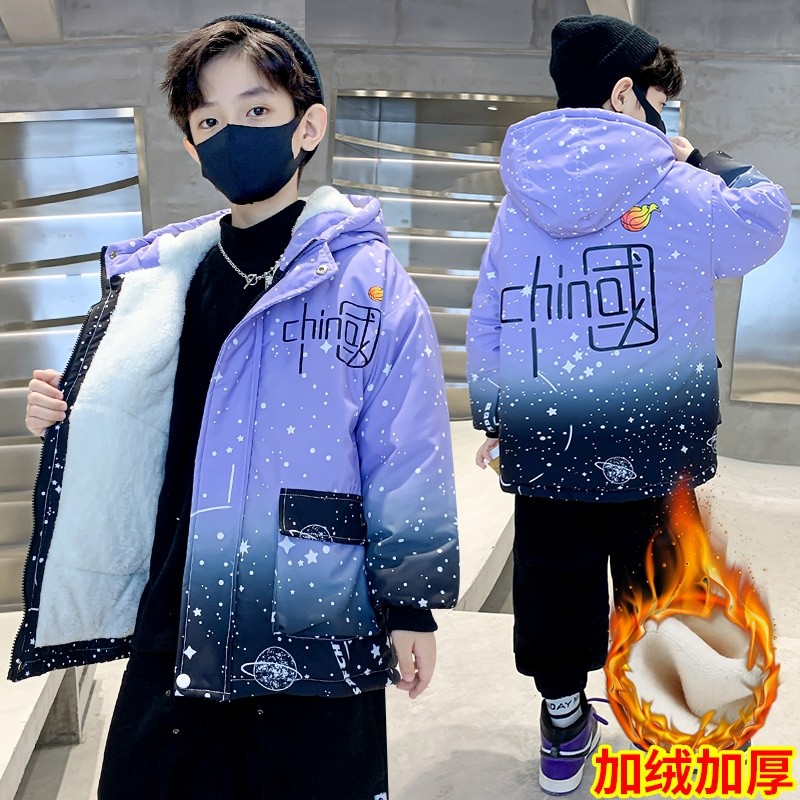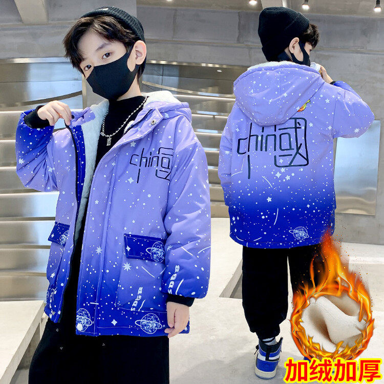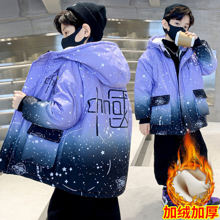 男童冬季外套2025年新款洋气中大童连帽儿童加绒男孩加厚韩版风衣