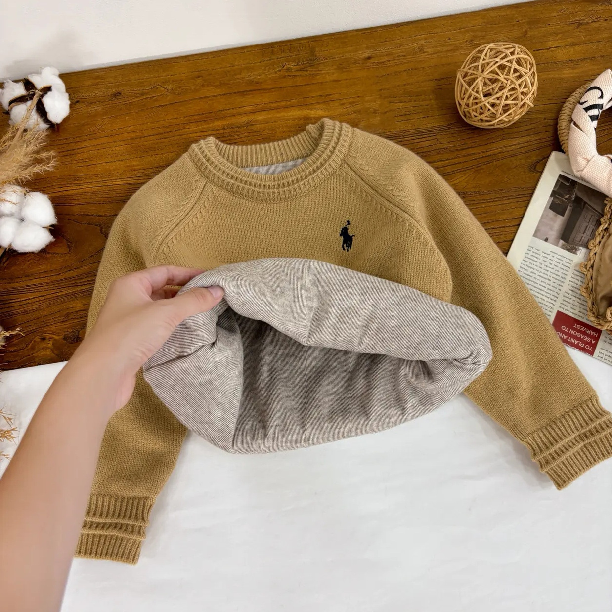 男童加绒加厚德绒针织毛衣2025新款男宝宝冬季打底衫上衣韩版外套