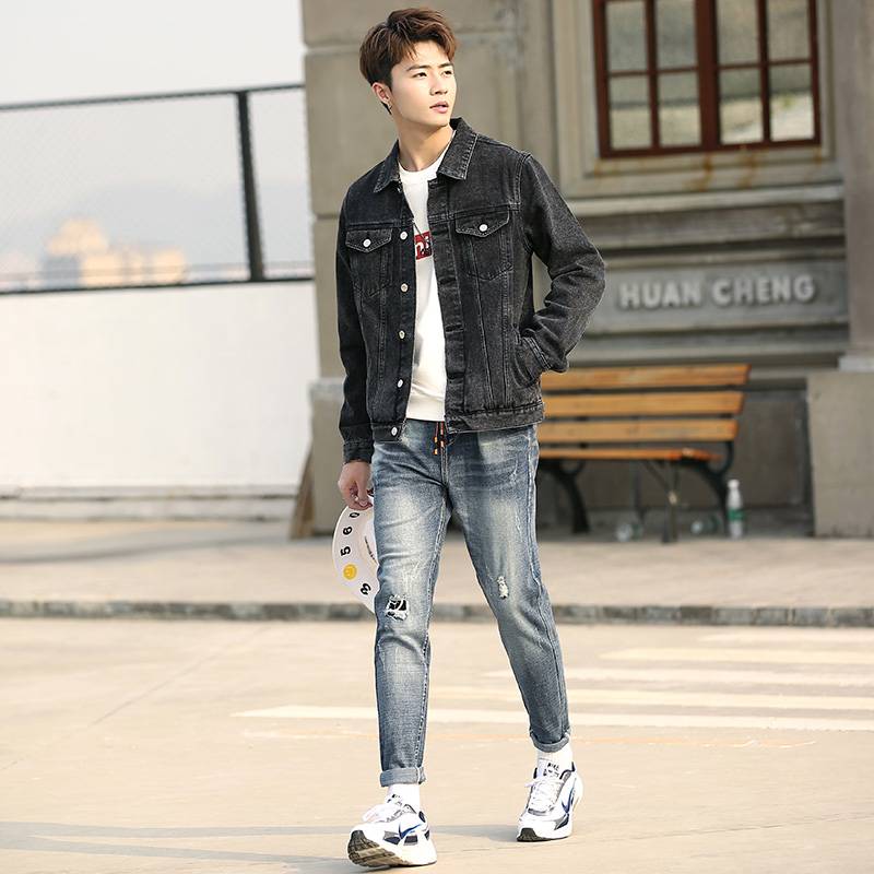 秋季牛仔外套男士秋冬款新款复古修身夹克男装休闲帅气上衣服潮流