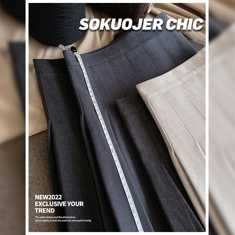 品质百褶裙女秋冬半身裙毛呢加厚腰短裙黑色显瘦大码a字裙子