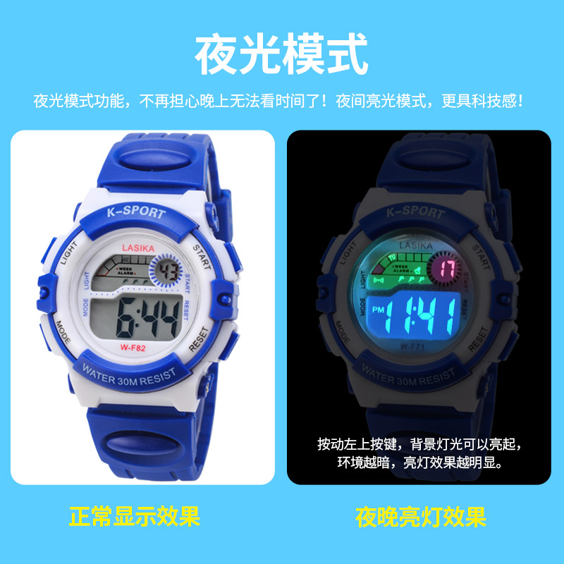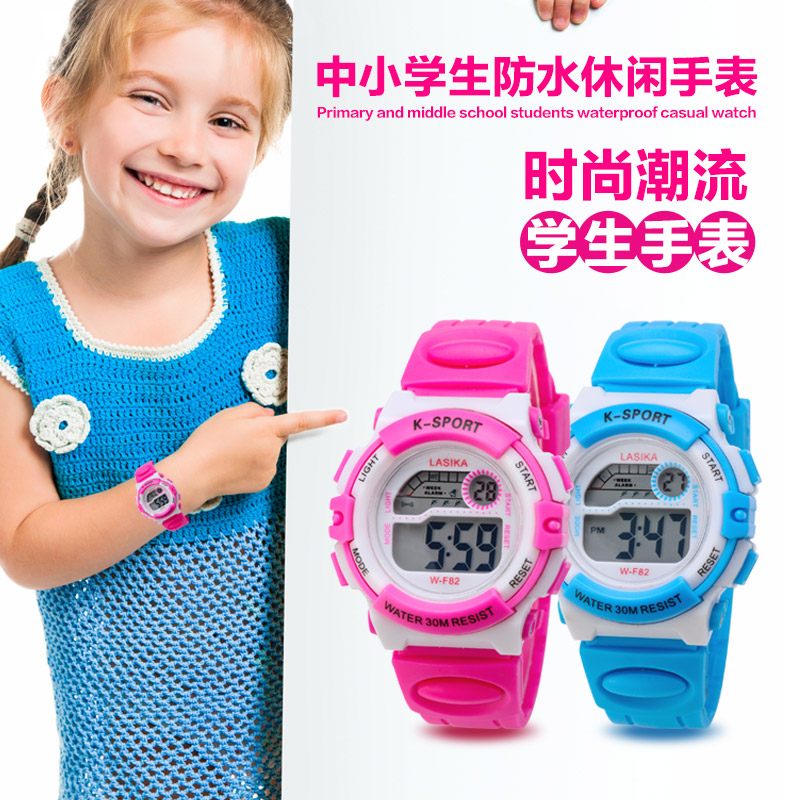 儿童手表女孩可爱防水女童小学生手表闹钟男孩夜光果冻电子表男童