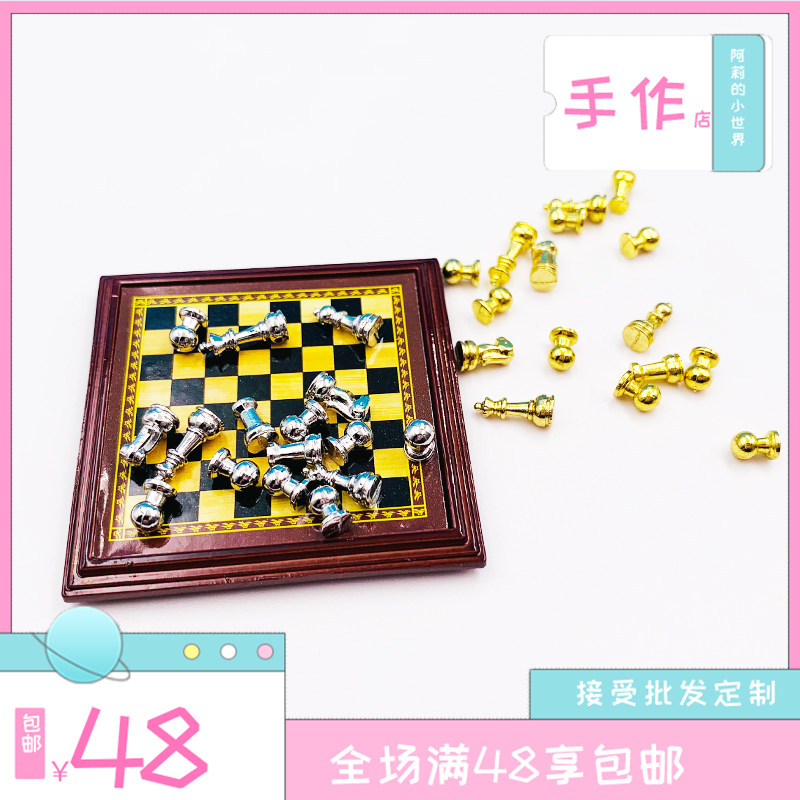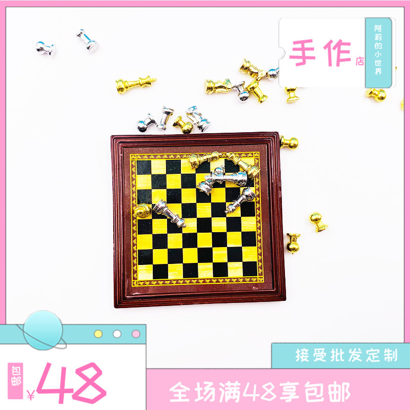 1:12娃娃屋dollhouse迷你微缩食玩配件摆件 国际象棋模型 无磁