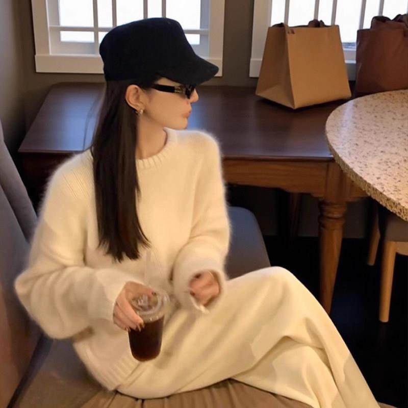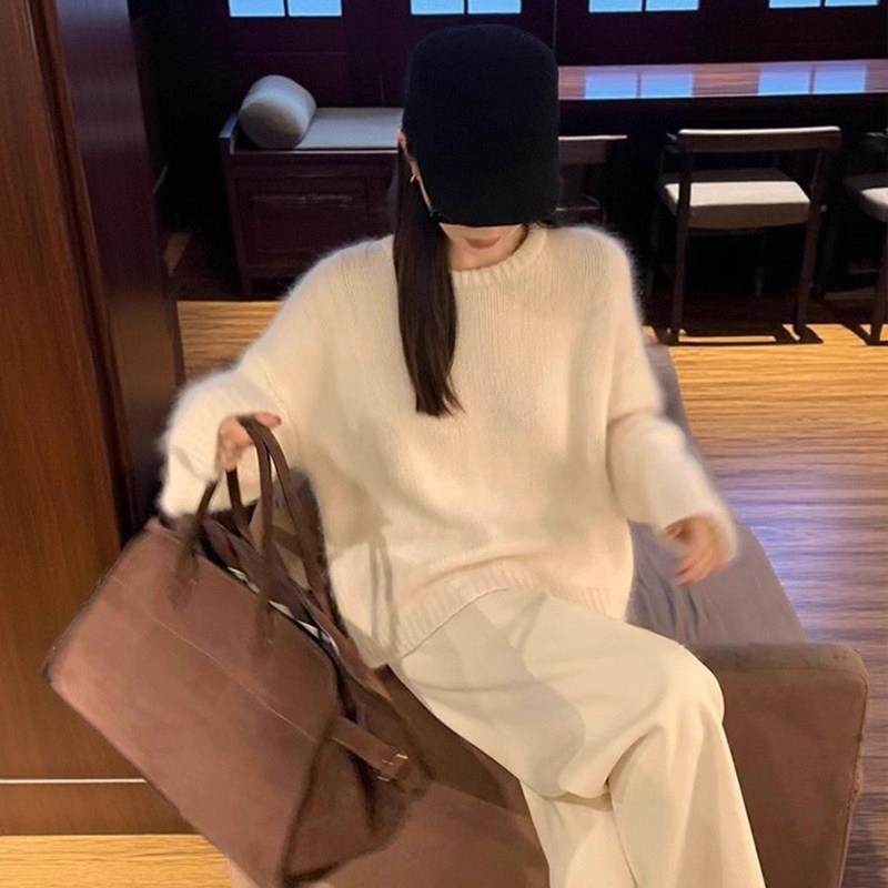 慵懒风白色水貂绒套头毛衣女秋冬可外穿内搭温柔风软糯针织衫上衣