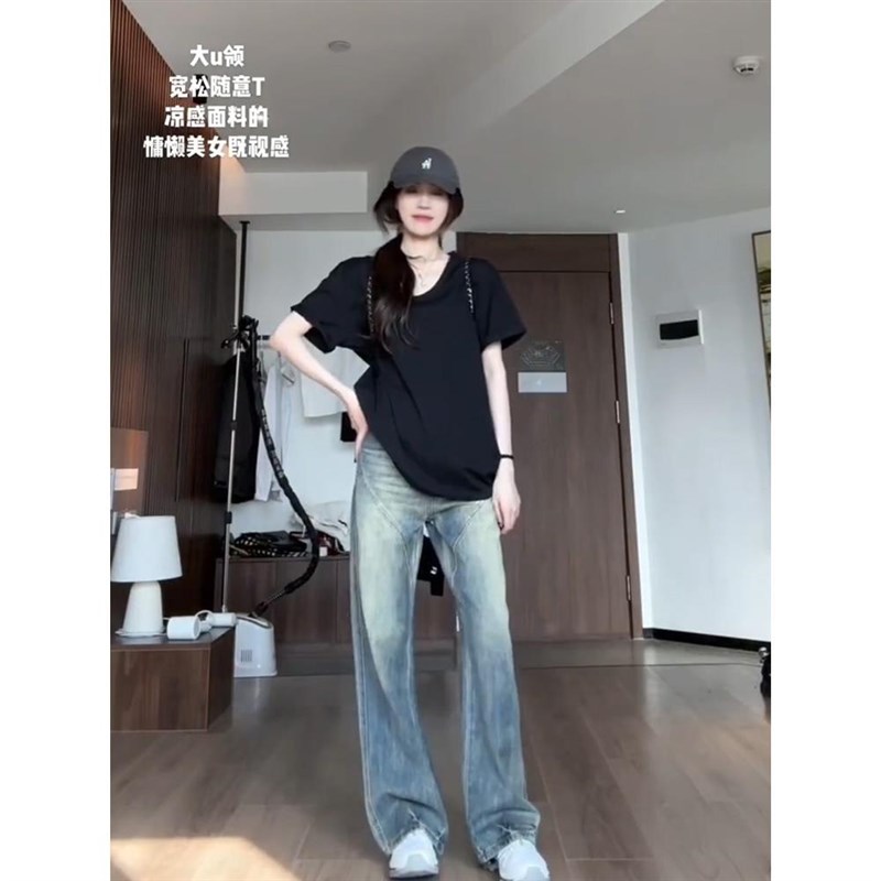 白色V领正d肩短袖t恤女夏季新款宽松显瘦半袖休闲百搭纯棉体恤上