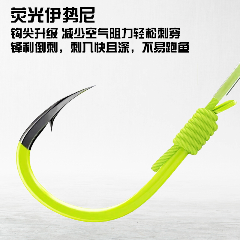 品龙新款荧光进口伊势尼翻板钩鲤鱼草鱼海钓抛竿爆炸钩朝上钩