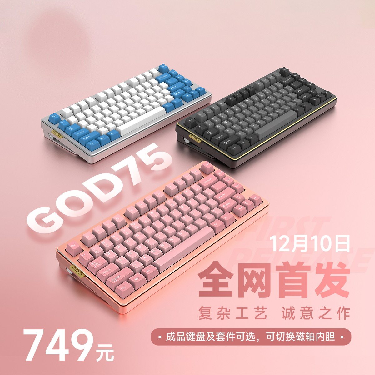 炽剑GOD75机械键盘CNC铝坨坨金属VIA游戏办公麻将音客制化高光边