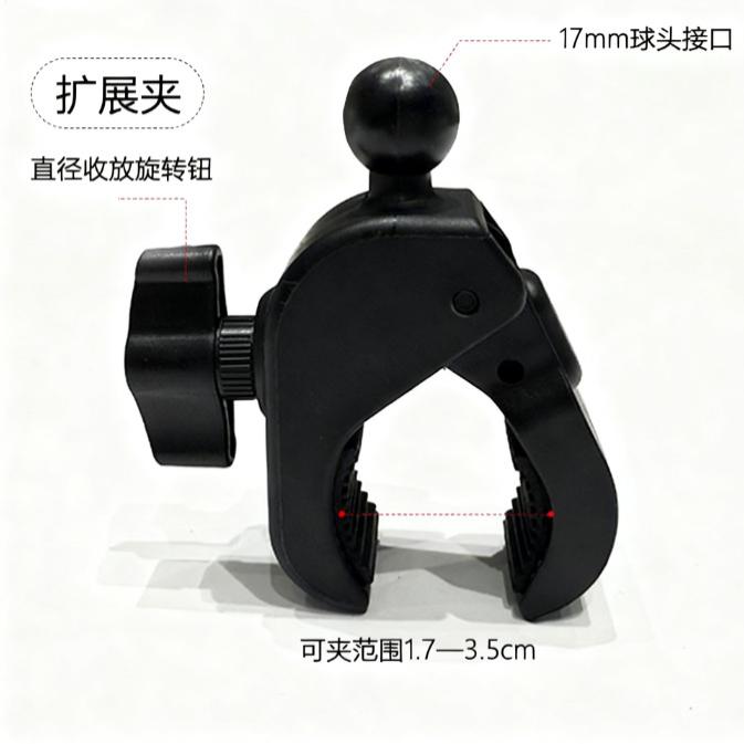 17mm球头夹支架配件大力夹摩托自行车记录仪支架车把手机支架底座