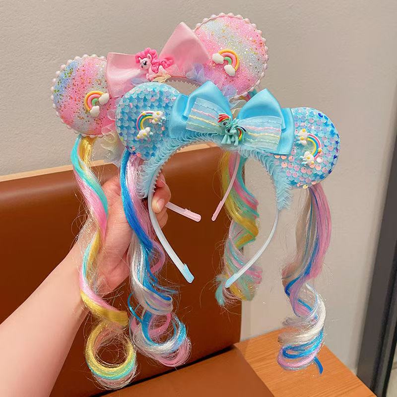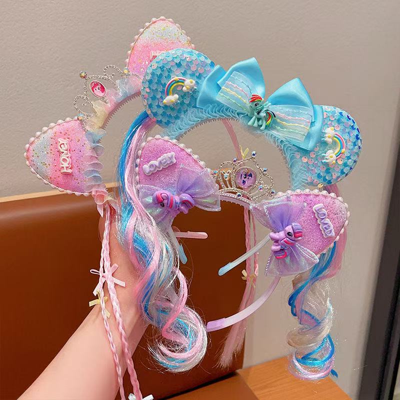 儿童卡通小马宝莉假发辫发箍公主皇冠头饰女童彩色渐变不伤发发饰