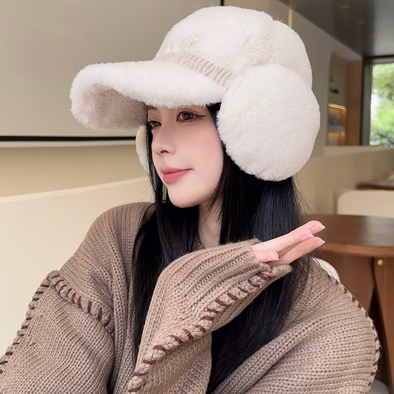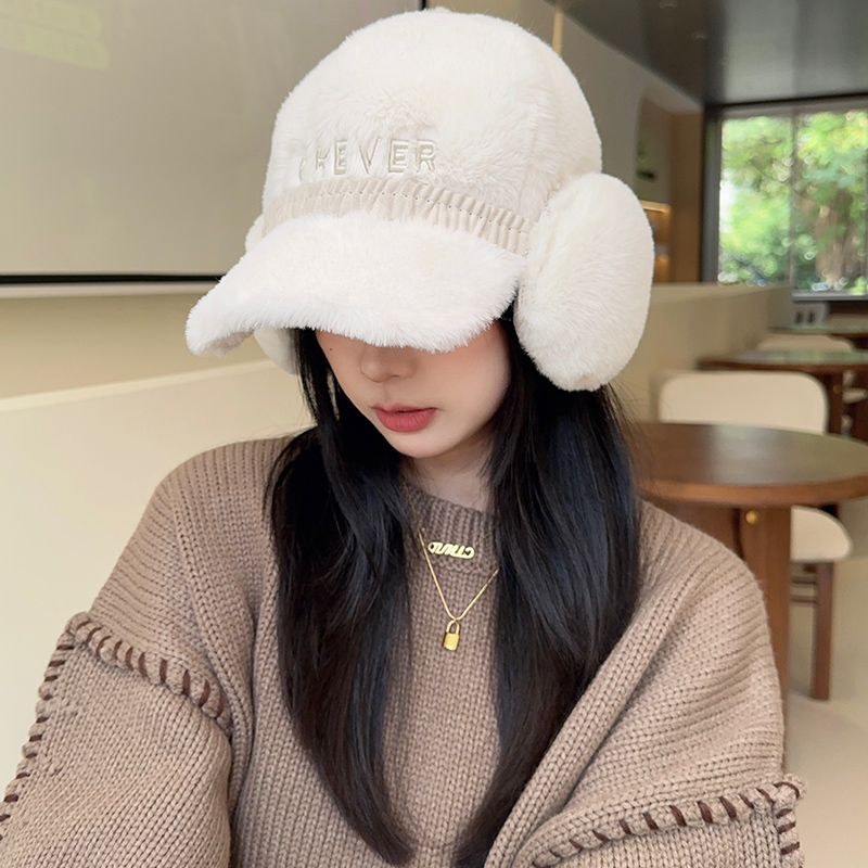 毛绒棒球帽子女秋冬季显脸小加厚保暖骑车护耳防寒鸭舌帽2025新款
