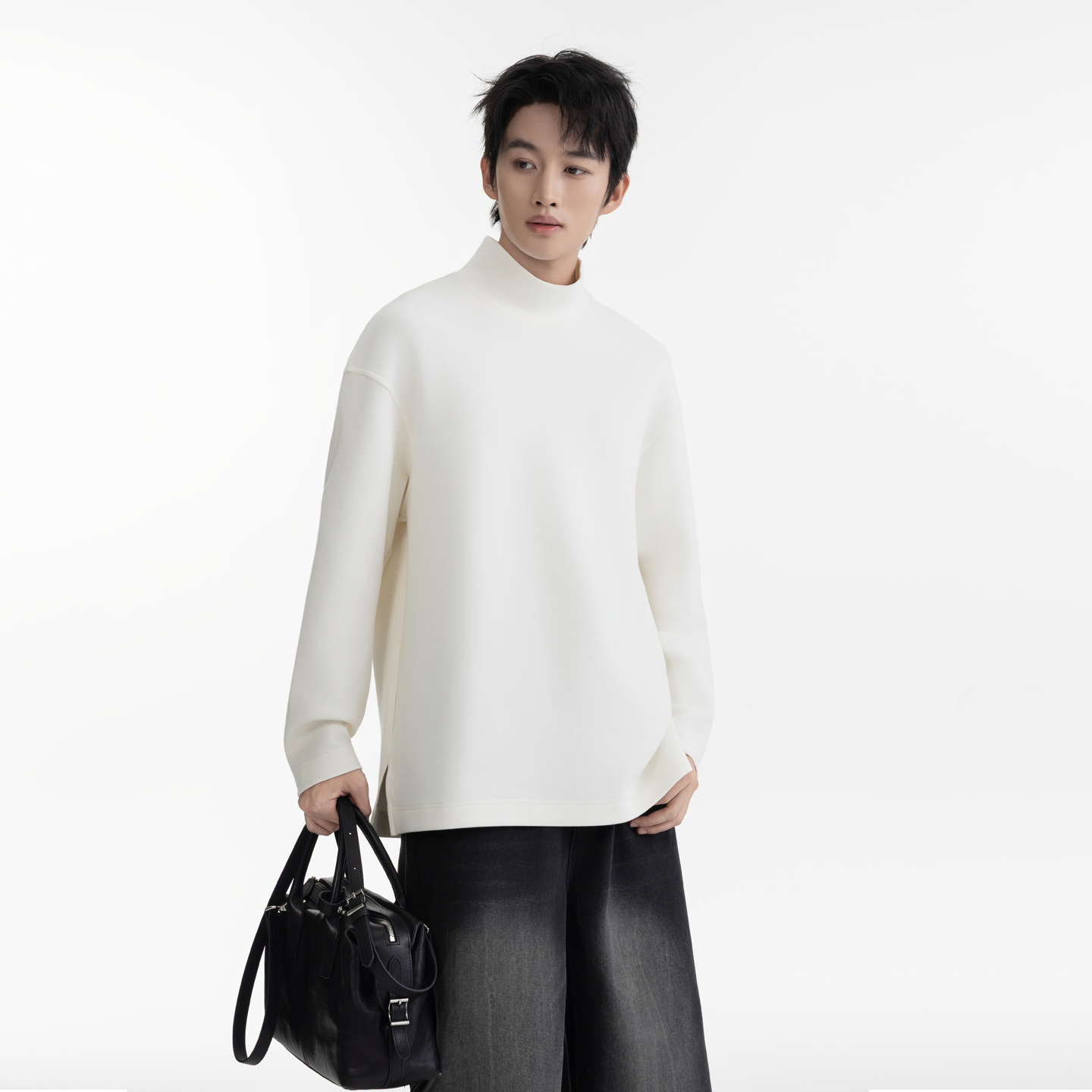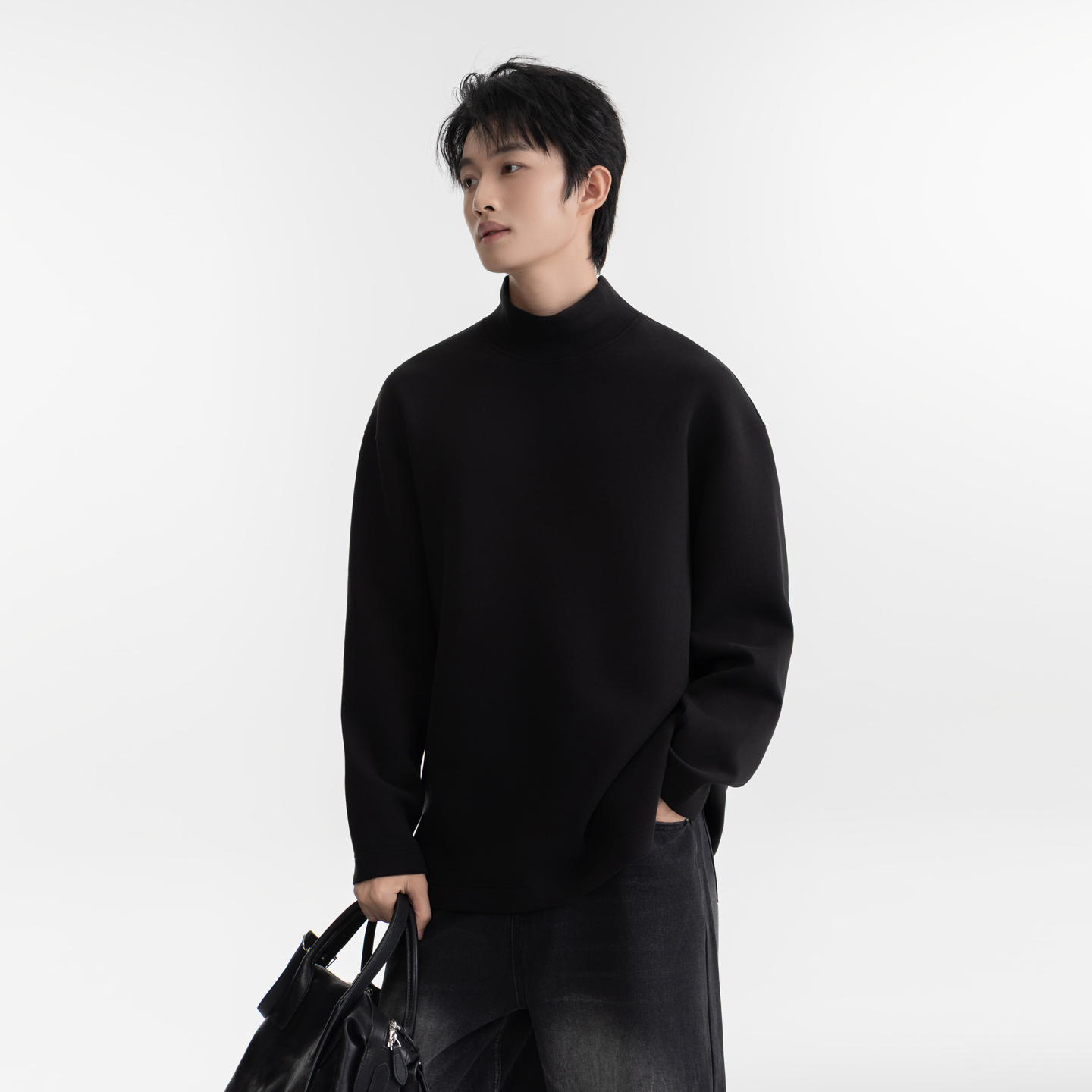 日言DATETALK原创潮牌长袖T恤男秋季百搭休闲舒适半高领打底衫