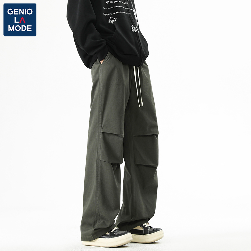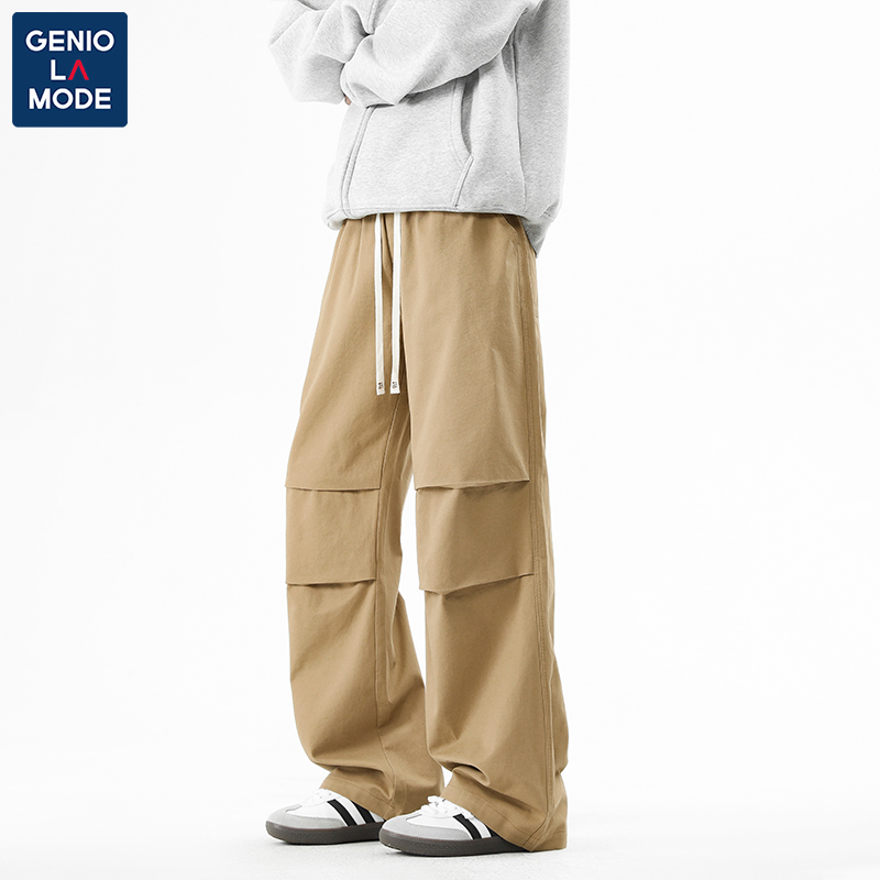 GENIOLAMODE工装裤子男春秋款高腰阔腿美式伐木裤运动休闲长裤子