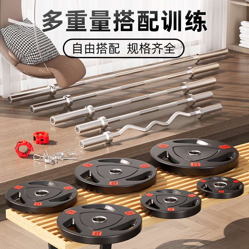杠铃套装家用杠铃哑铃组合套装奥杆杠铃杆杠铃片大孔健身器材男士