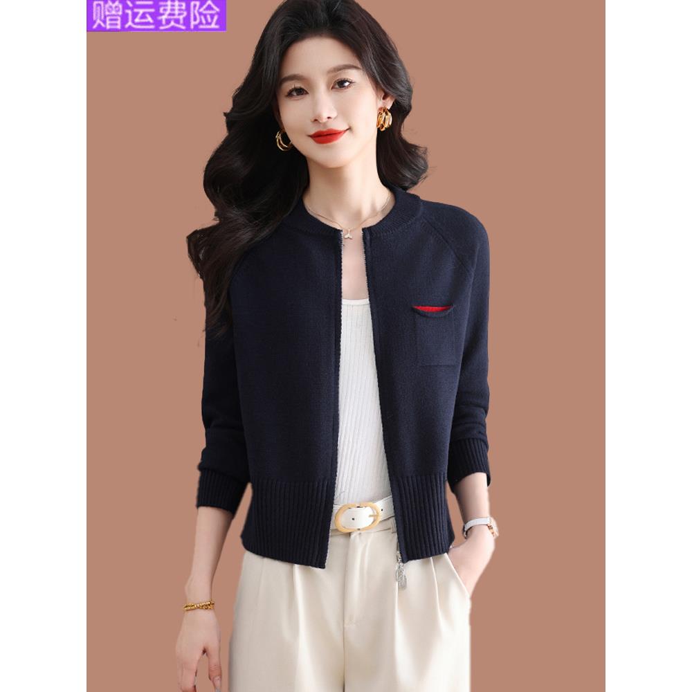 宽松百搭羊毛开衫毛衣女新款春秋外搭小个子短款上衣拉炼针织外套