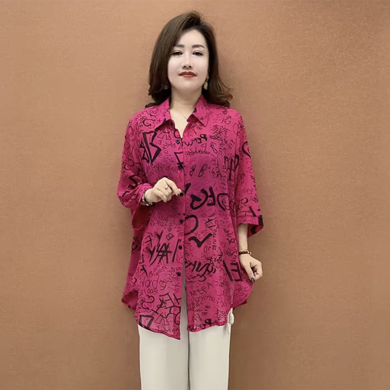 时尚女士碎花雪纺衫夏季新款加肥加大中长款防晒衬衫中袖防晒上衣