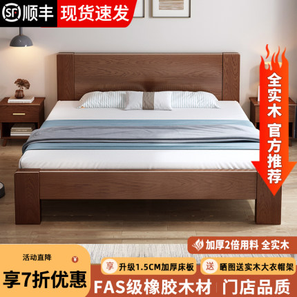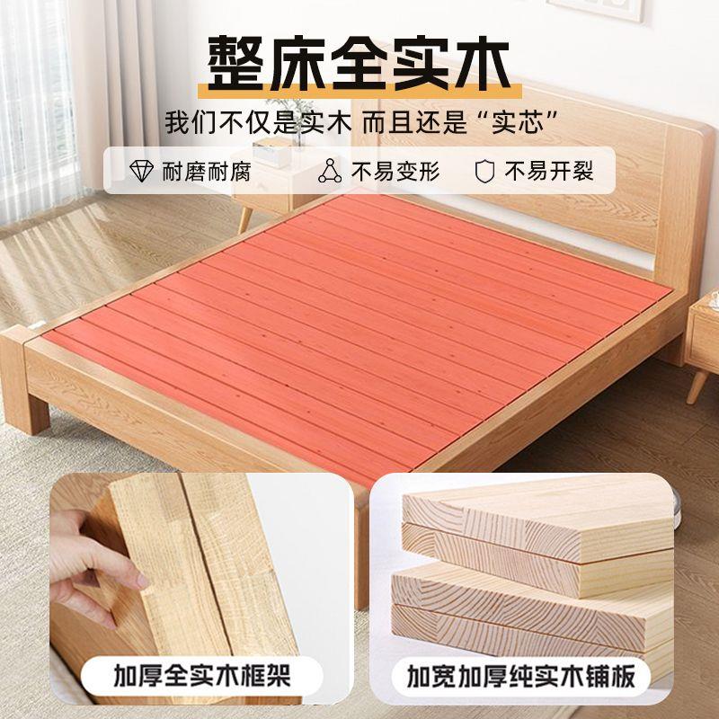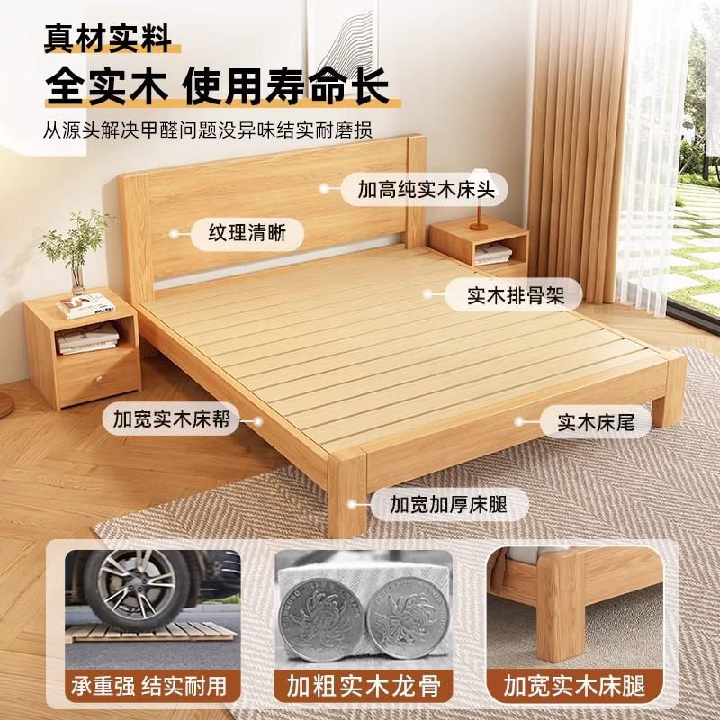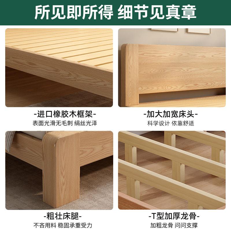 全实木床现代简约主卧家用1.5双人床1.8米橡胶木出租房用单人床架