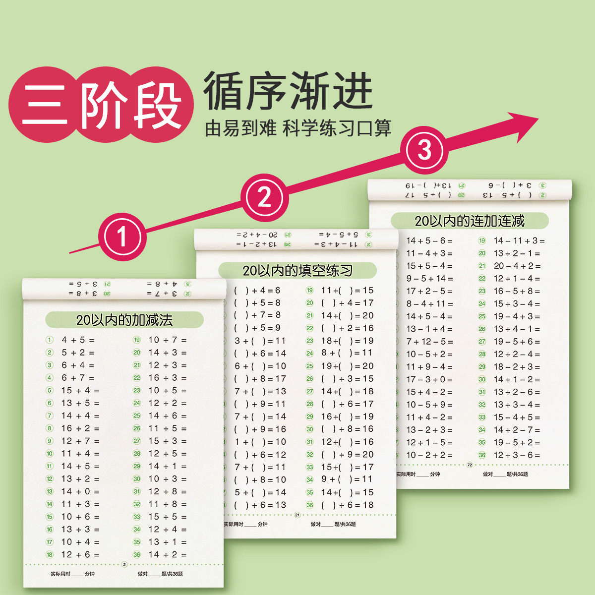 10 20以内加减法天天练口算题卡幼小衔接十二十以内加减法练习册幼儿园幼升小每日一练数学大班中班算数教材全套一日一练