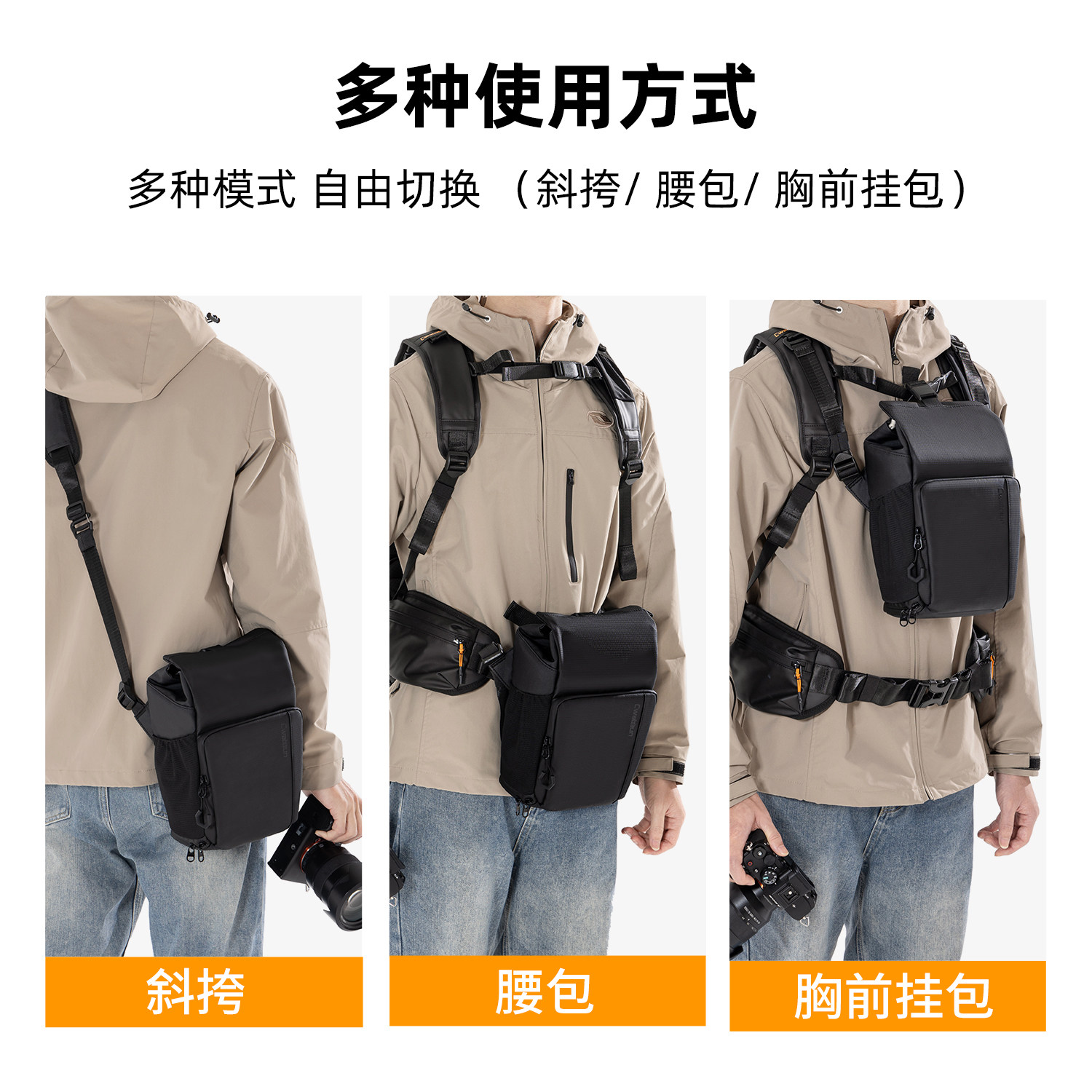Cwatcun香港品牌多功能相机包斜挎三角包摄影包防水耐磨微单反适用佳能r50尼康索尼zve10 富士xs20 xt30