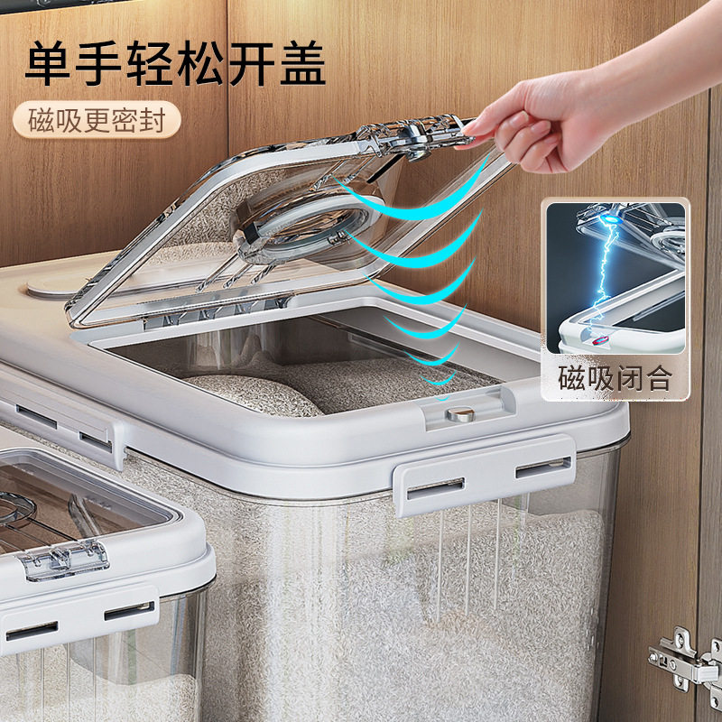 日本米桶家用防虫防潮密封磁吸米缸大米收纳盒米箱面桶面粉储存罐